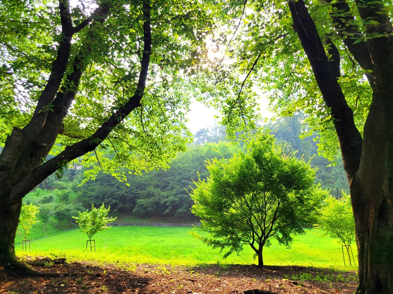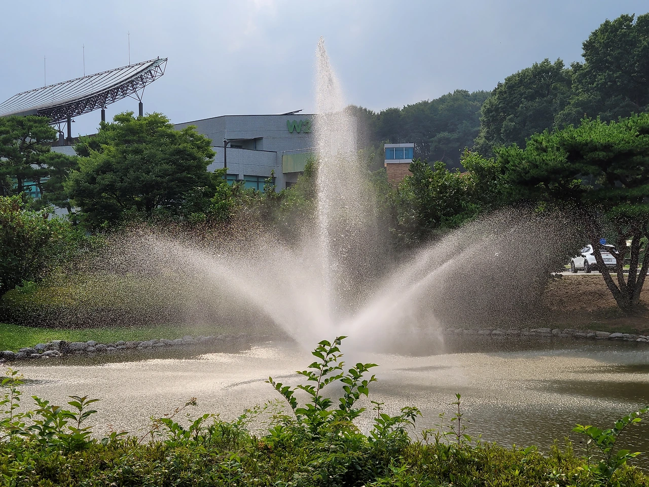 싱그러운 녹음과 스며드는 햇살, 분수의 무지개,