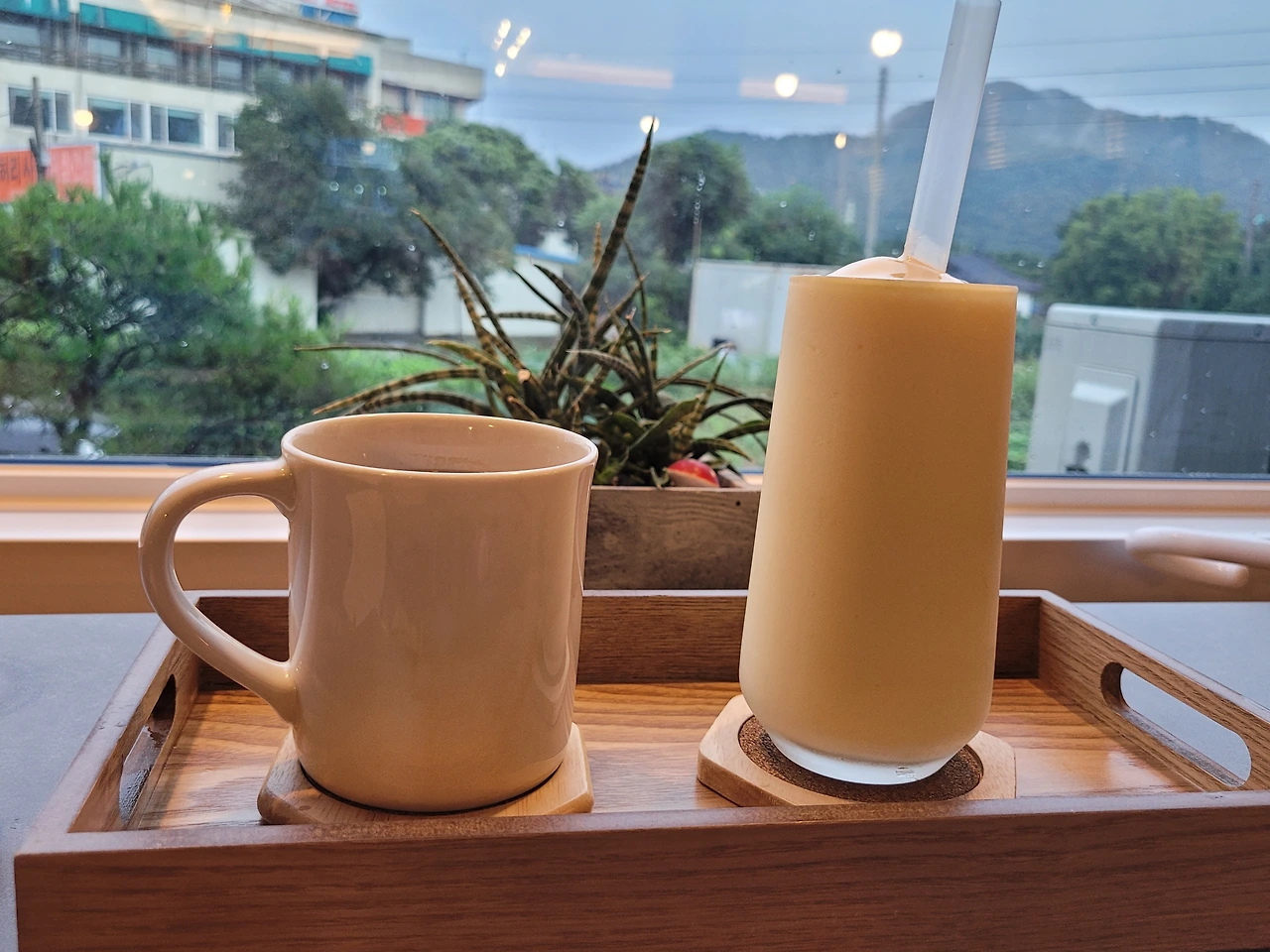 나와 아들은 커피숍에서 잠시 여유를 즐겼다.