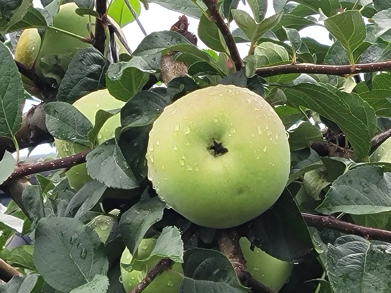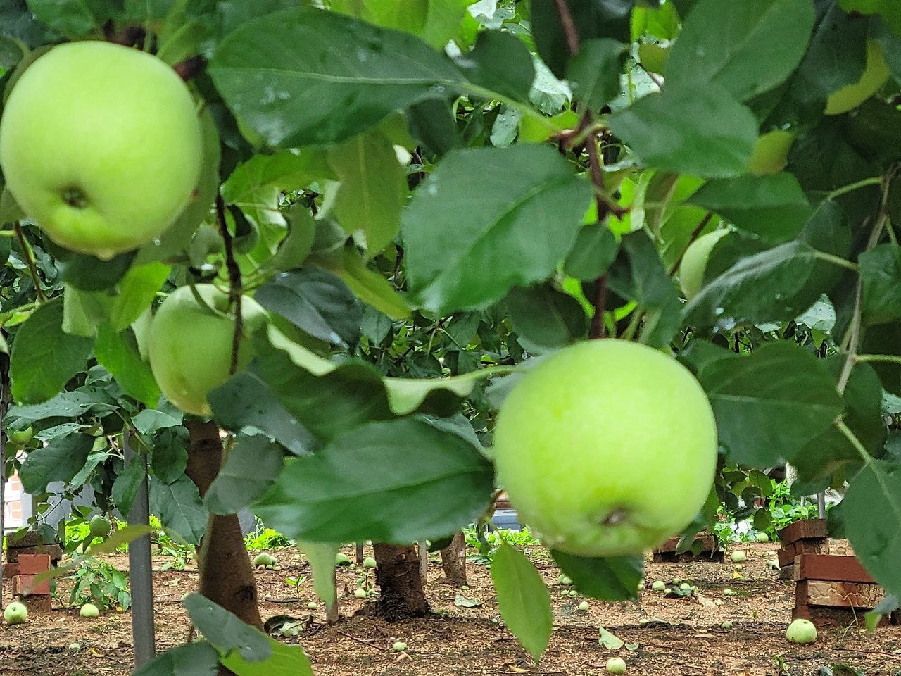 과수원의 사과가 탐스러워 멈춰서 담고,