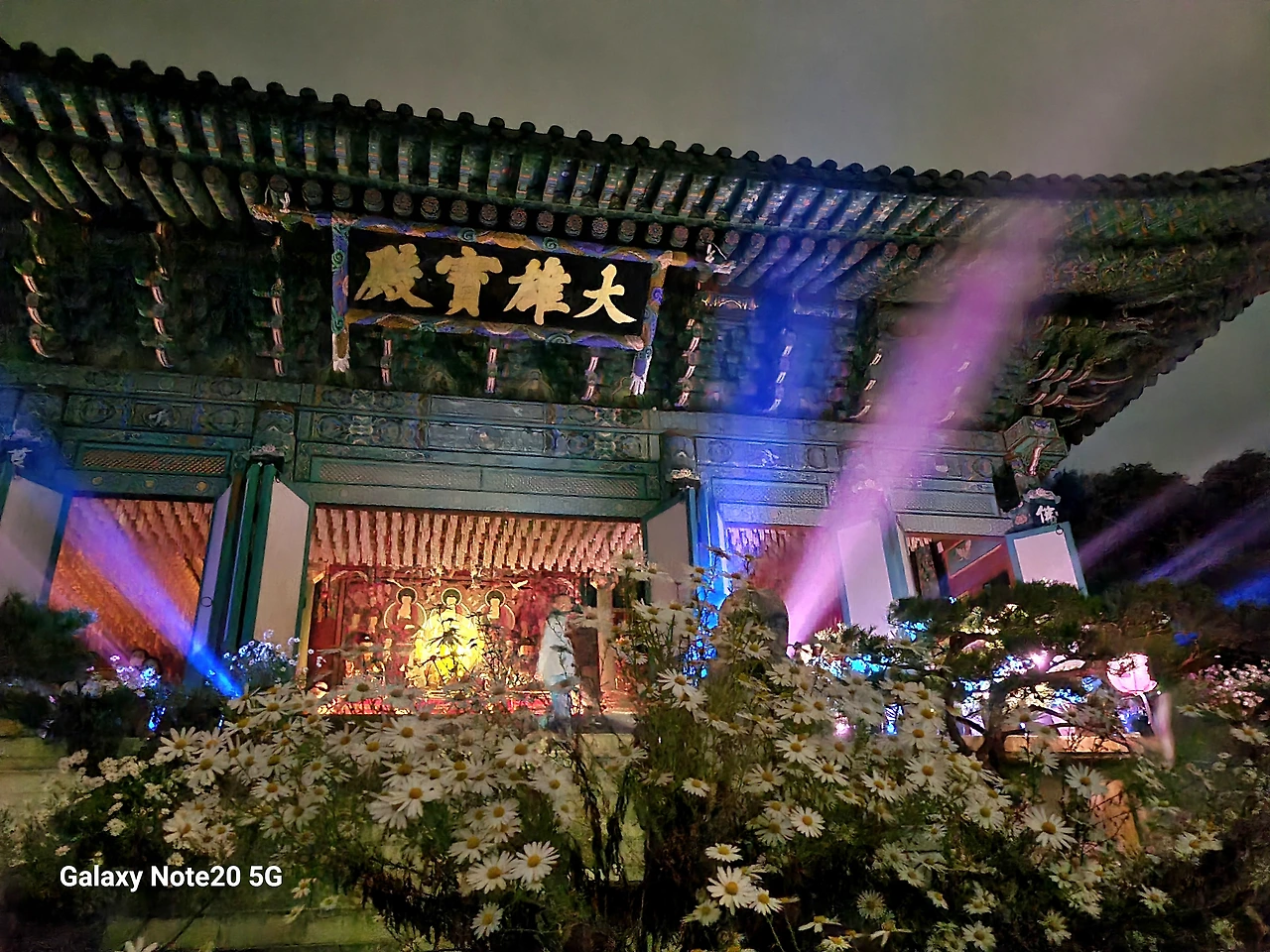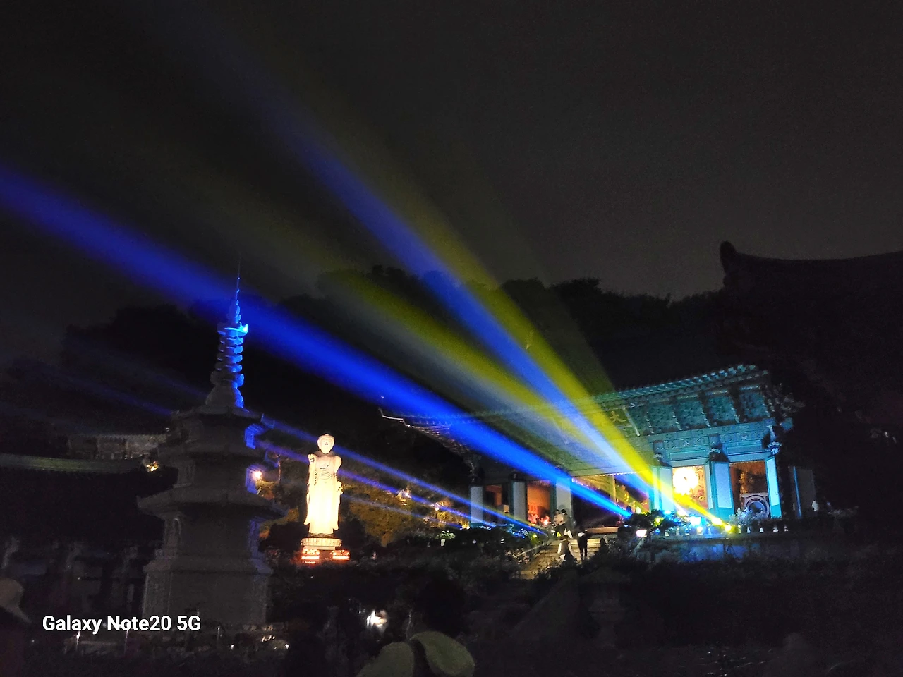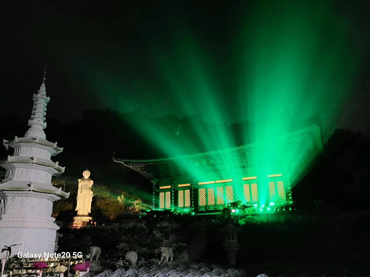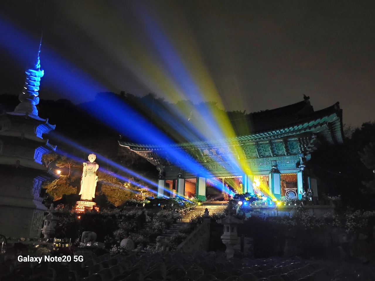 대웅보전에서 쏘는 불빛이 뿜어내는 웅장함이란~~