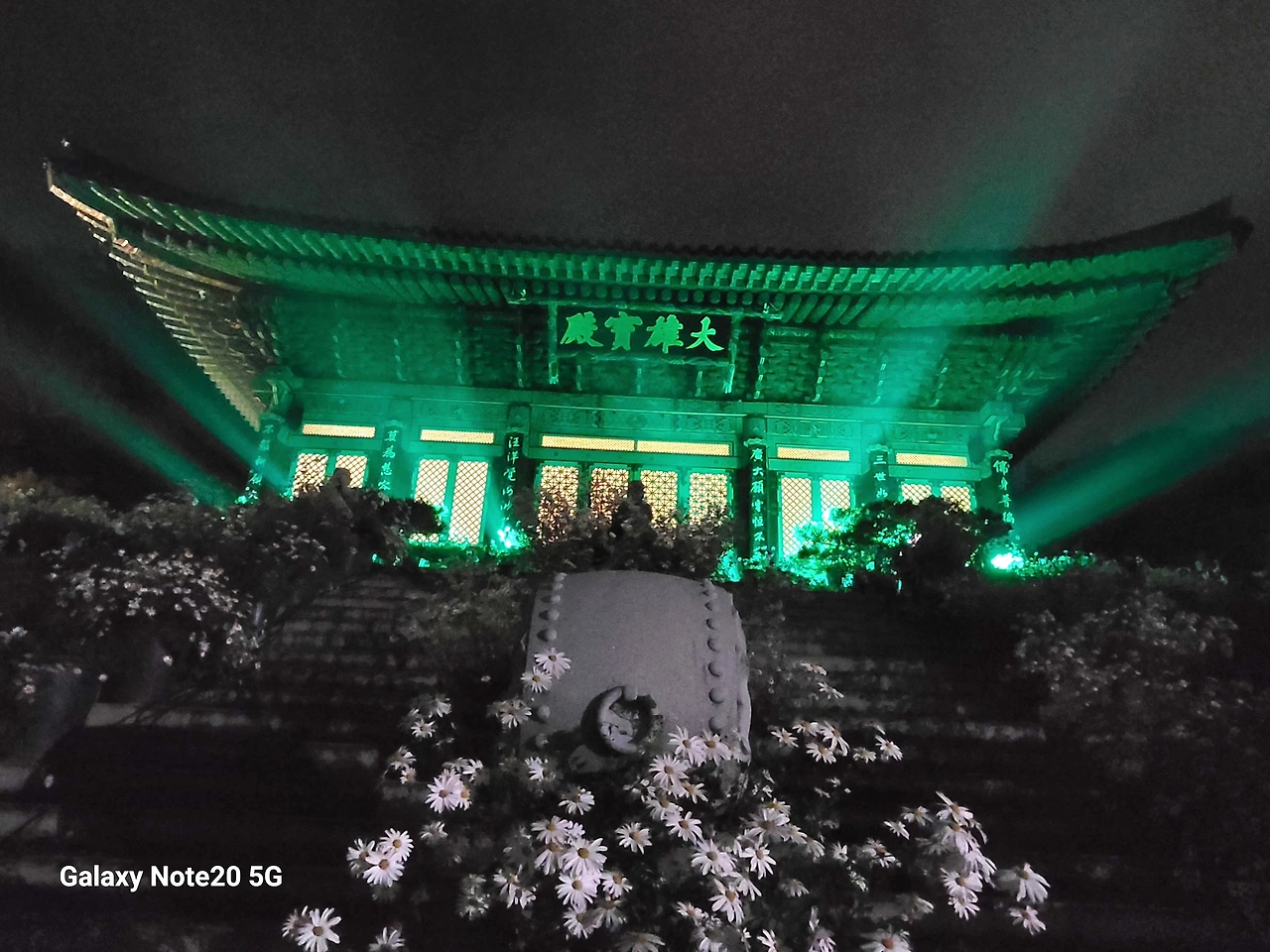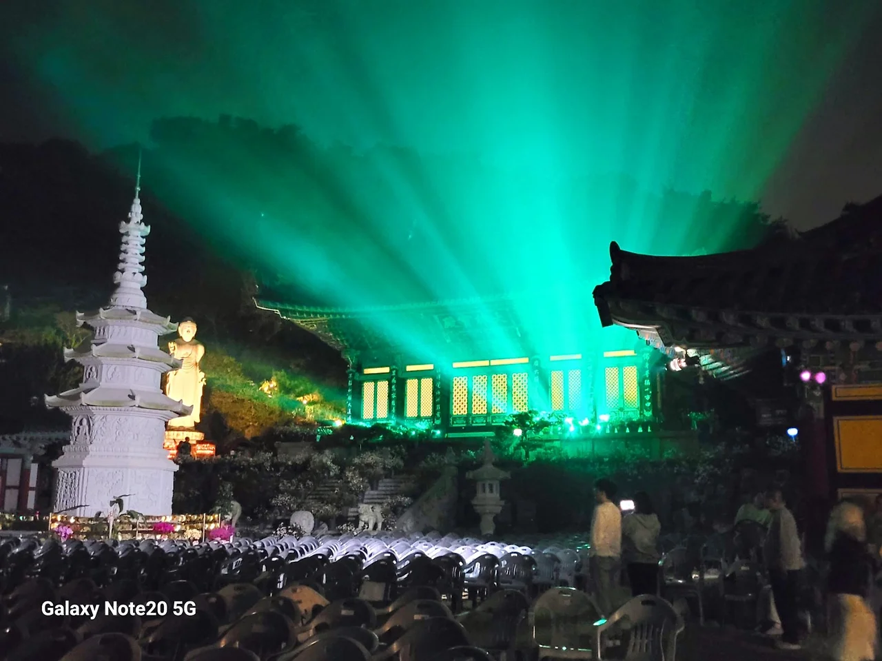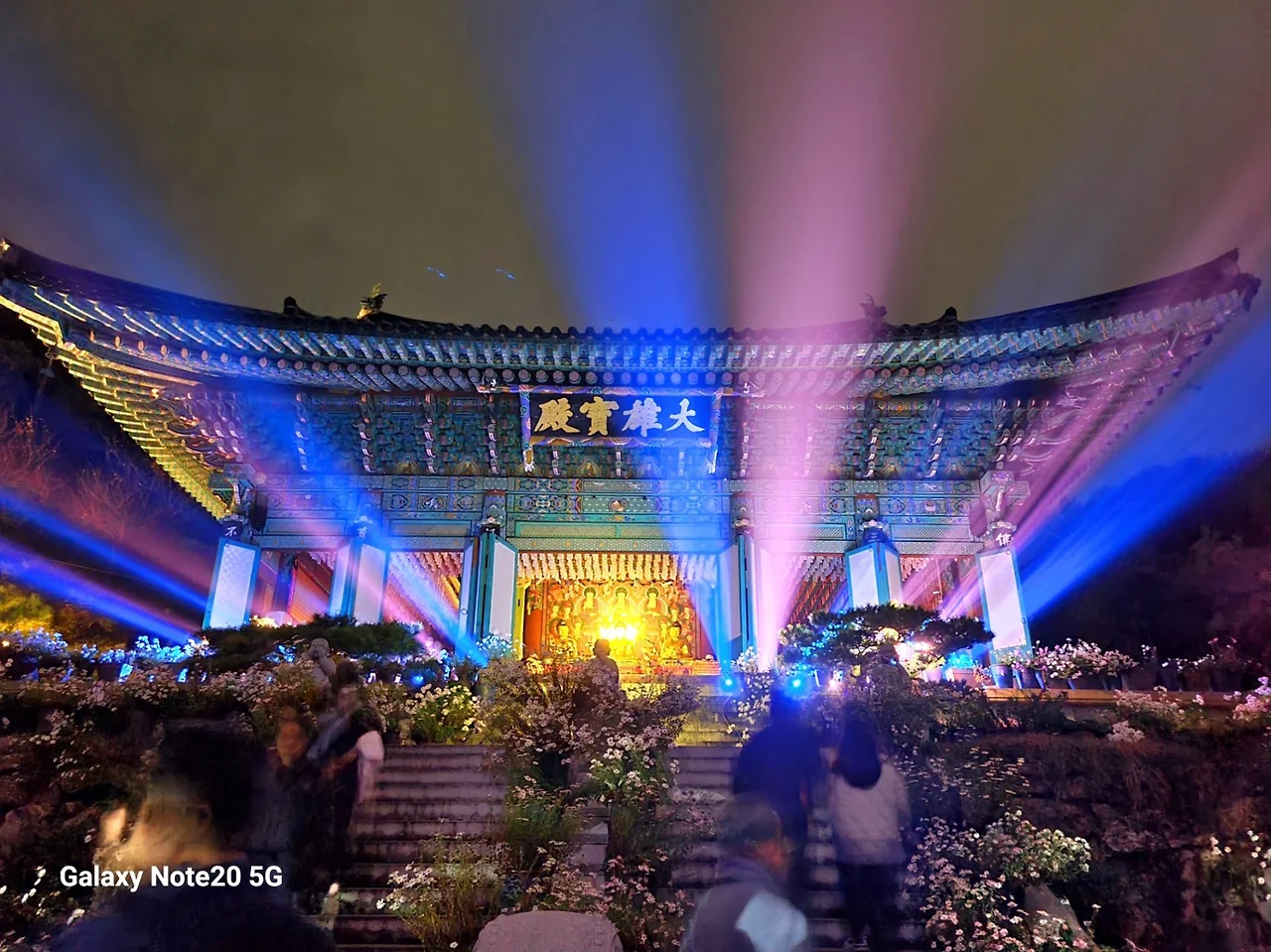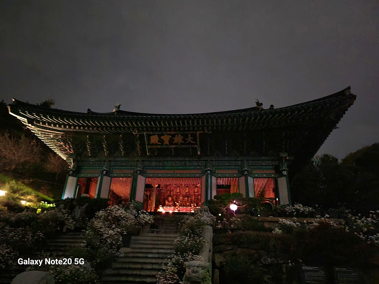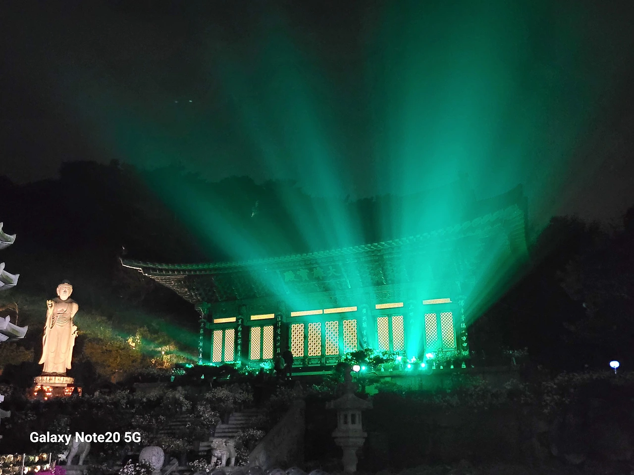 대웅보전에서 쏘는 불빛이 뿜어내는 웅장함이란~~