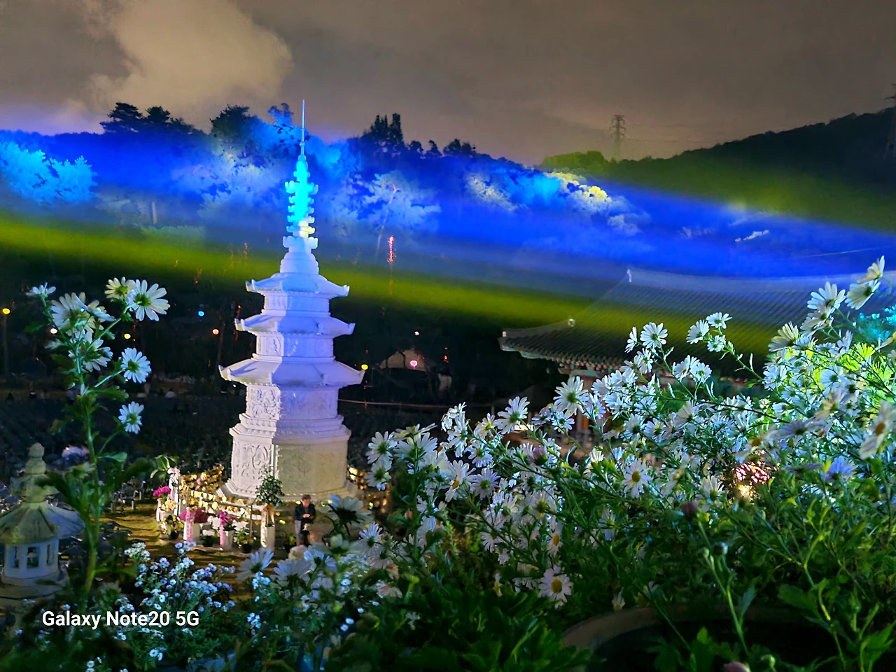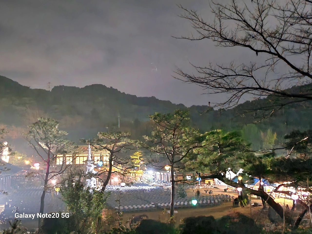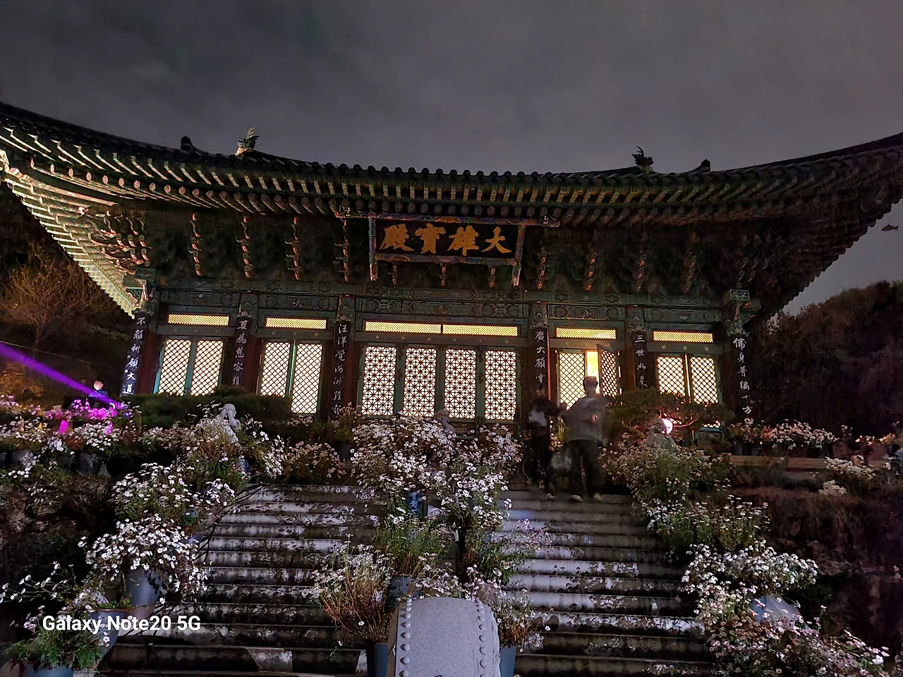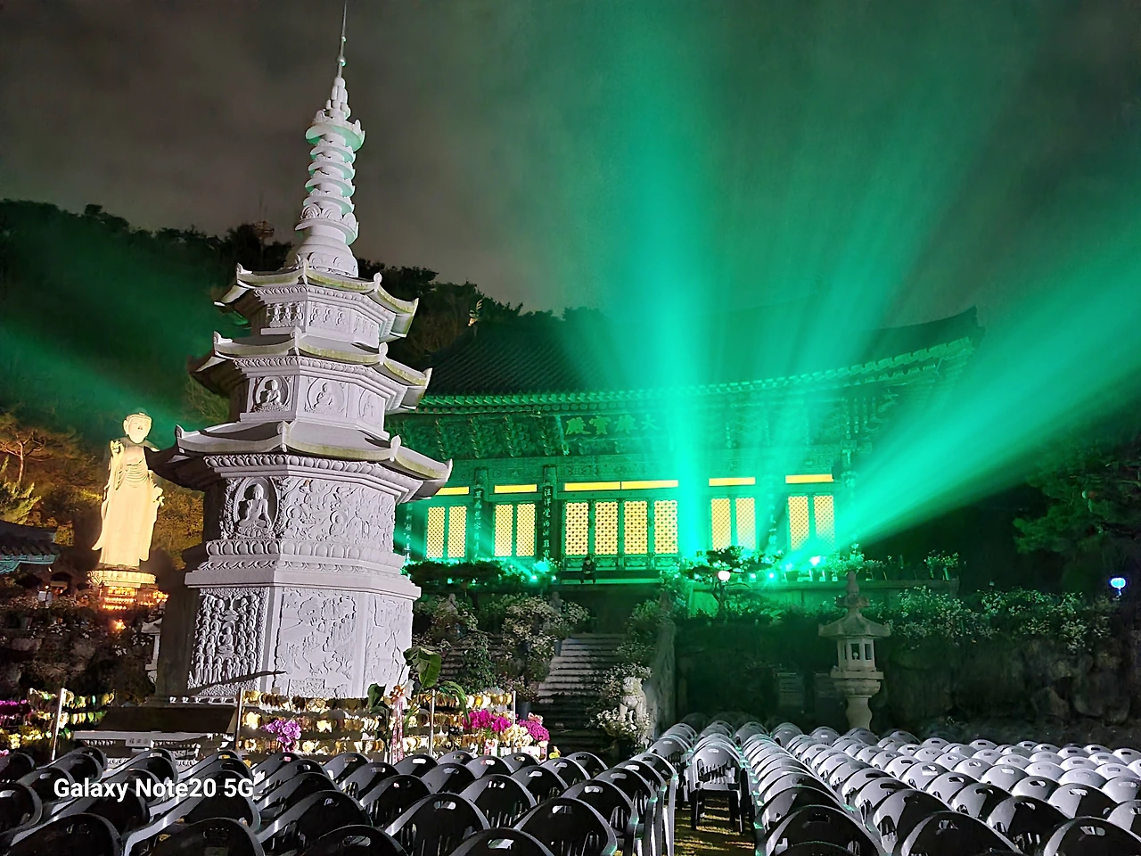 대웅보전에서 쏘는 불빛이 뿜어내는 웅장함이란~~