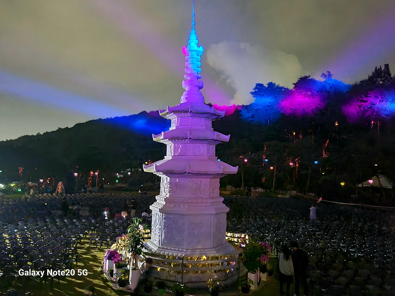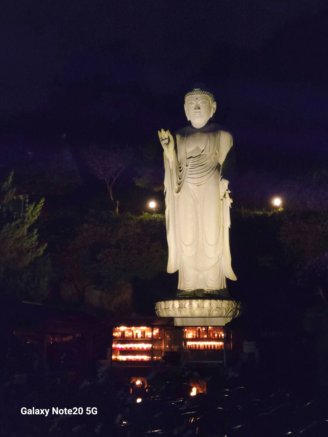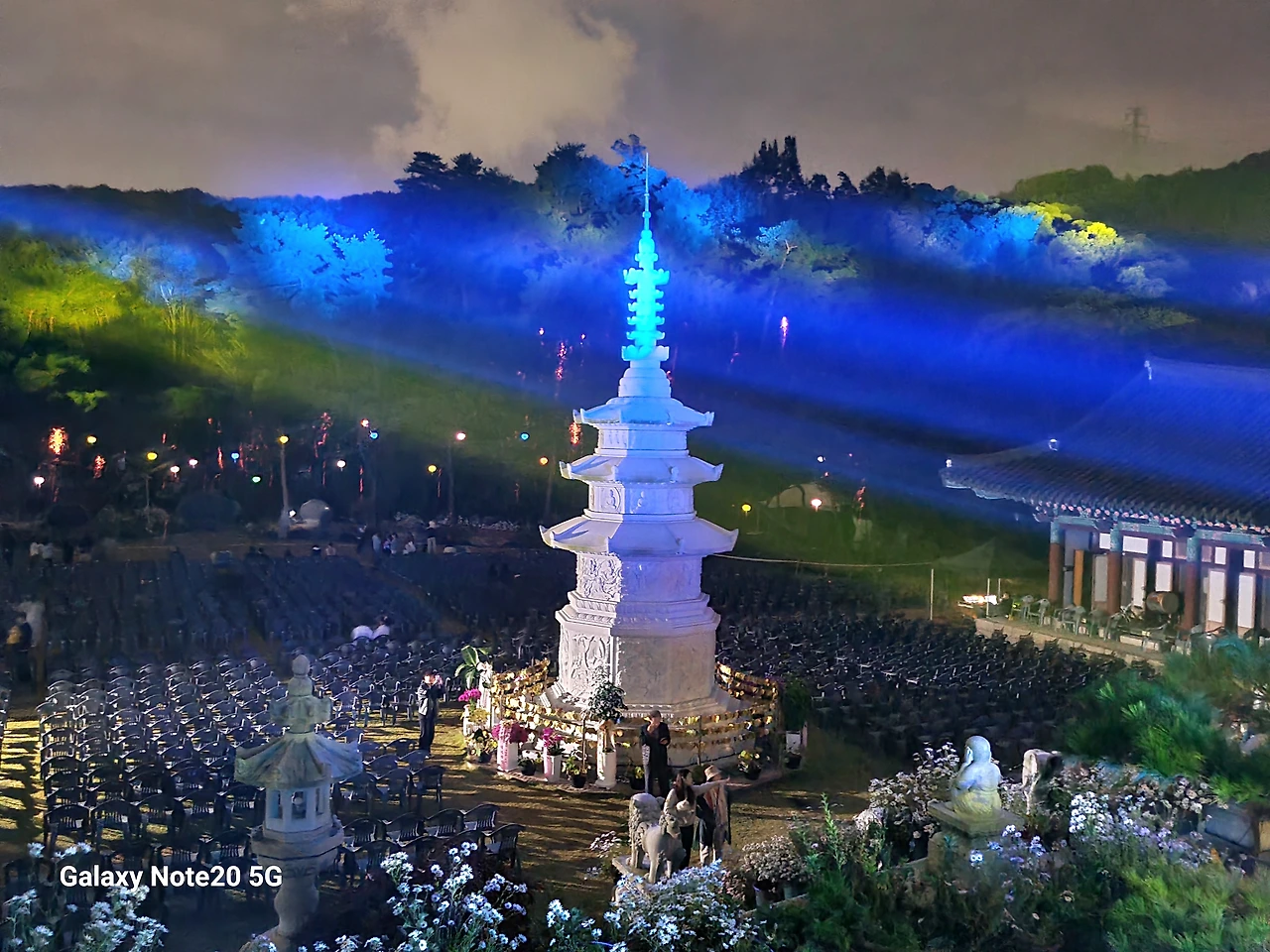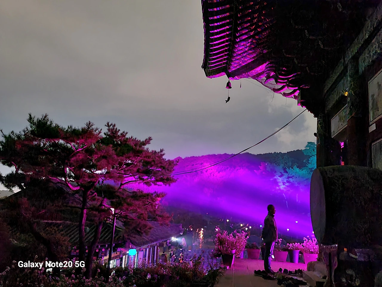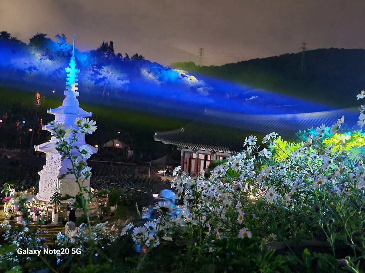 대웅보전에서 쏘는 불빛이 뿜어내는 웅장함이란~~