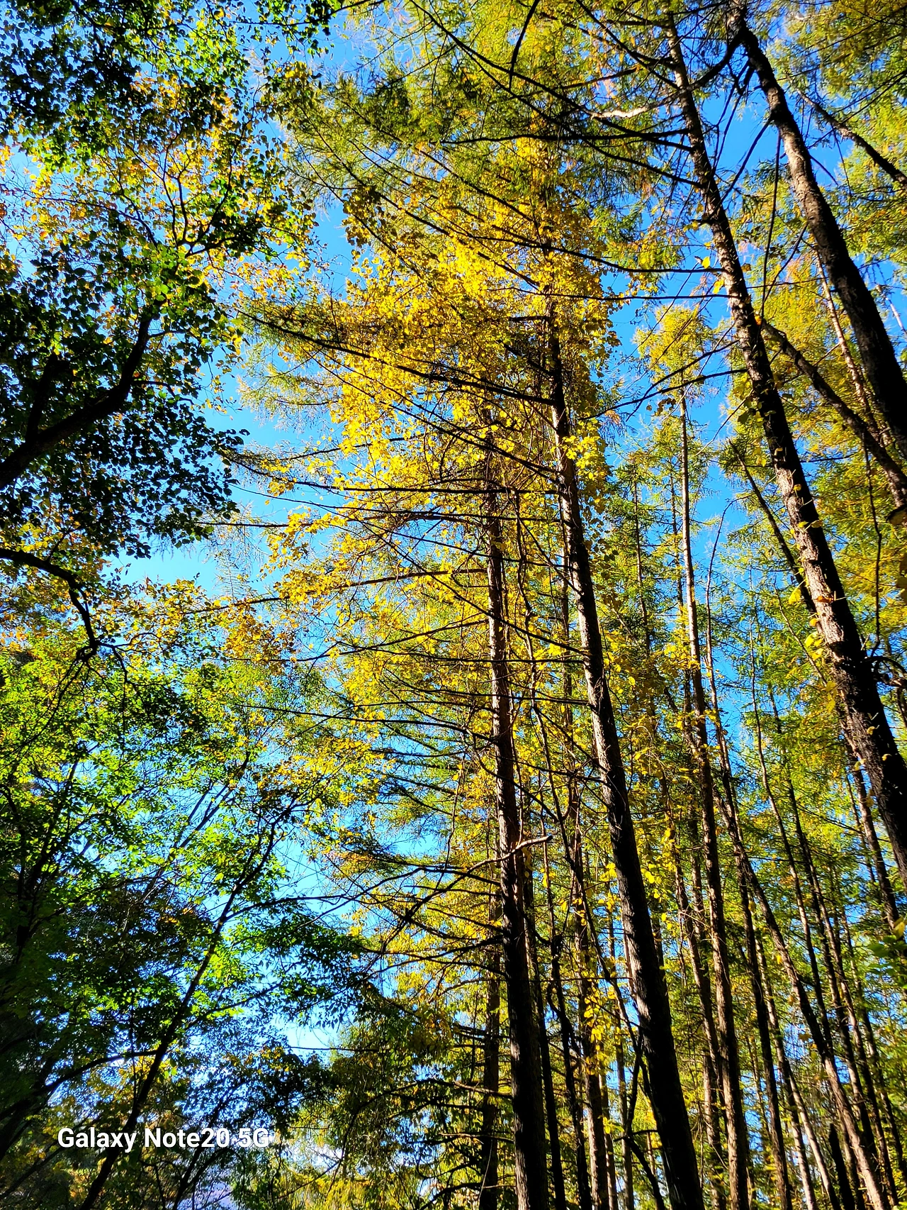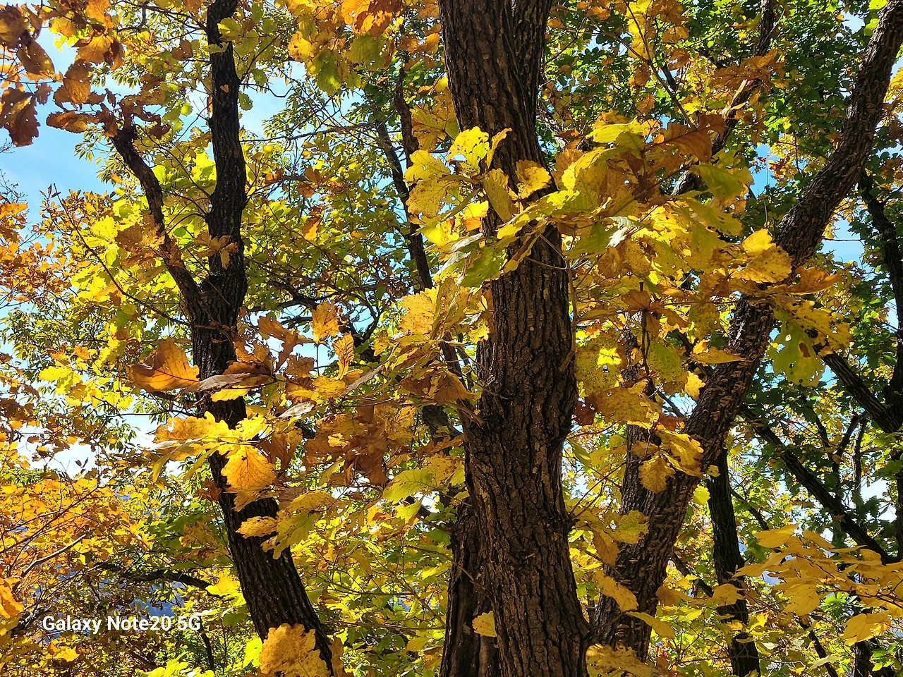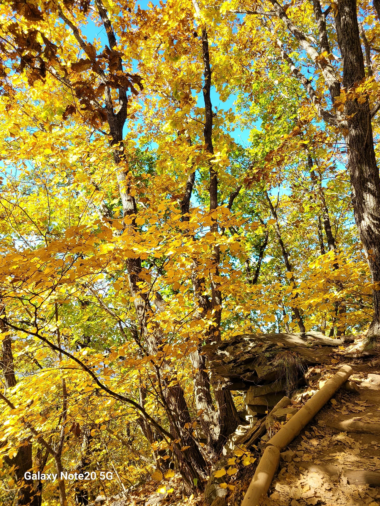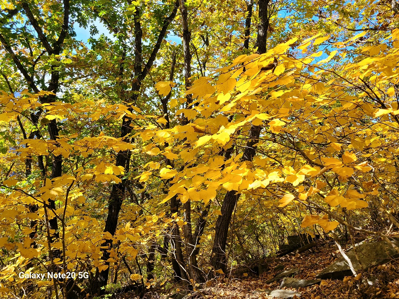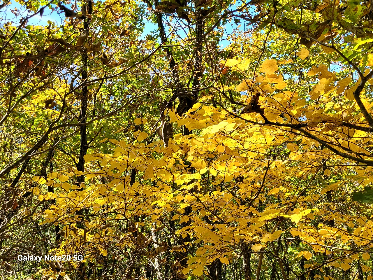 노오란 단풍을 황금빛으로 빛나게 하는 해의 어울림.