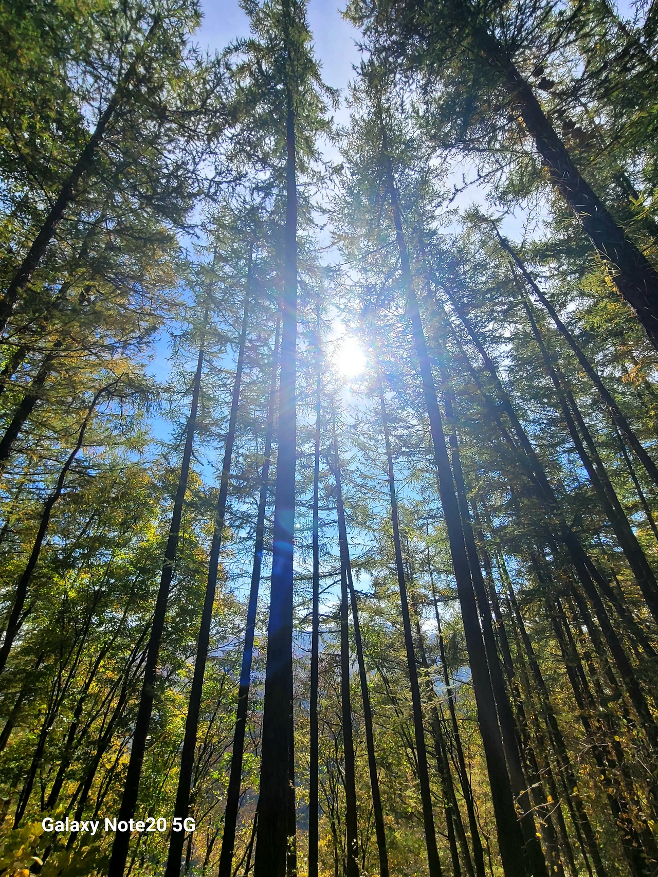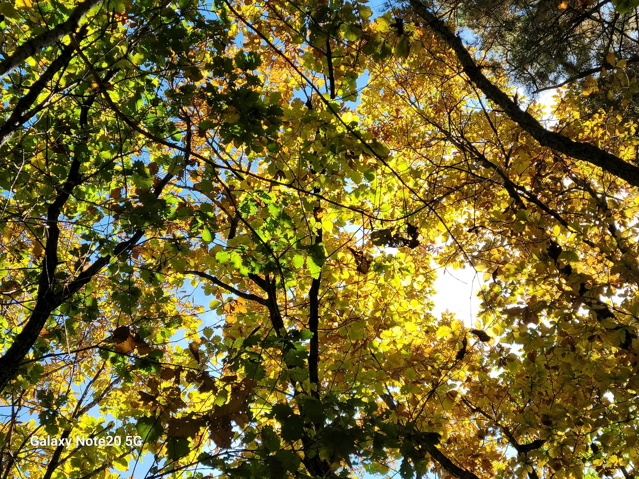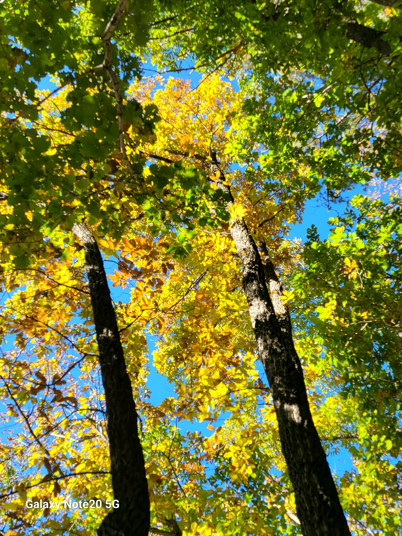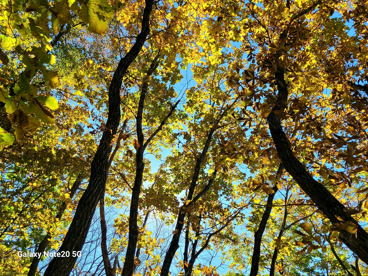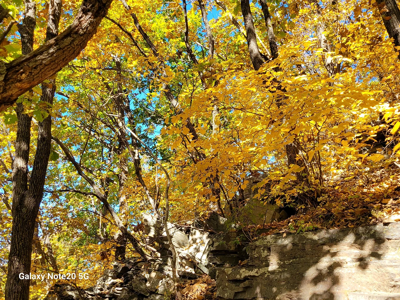 노오란 단풍을 황금빛으로 빛나게 하는 해의 어울림.