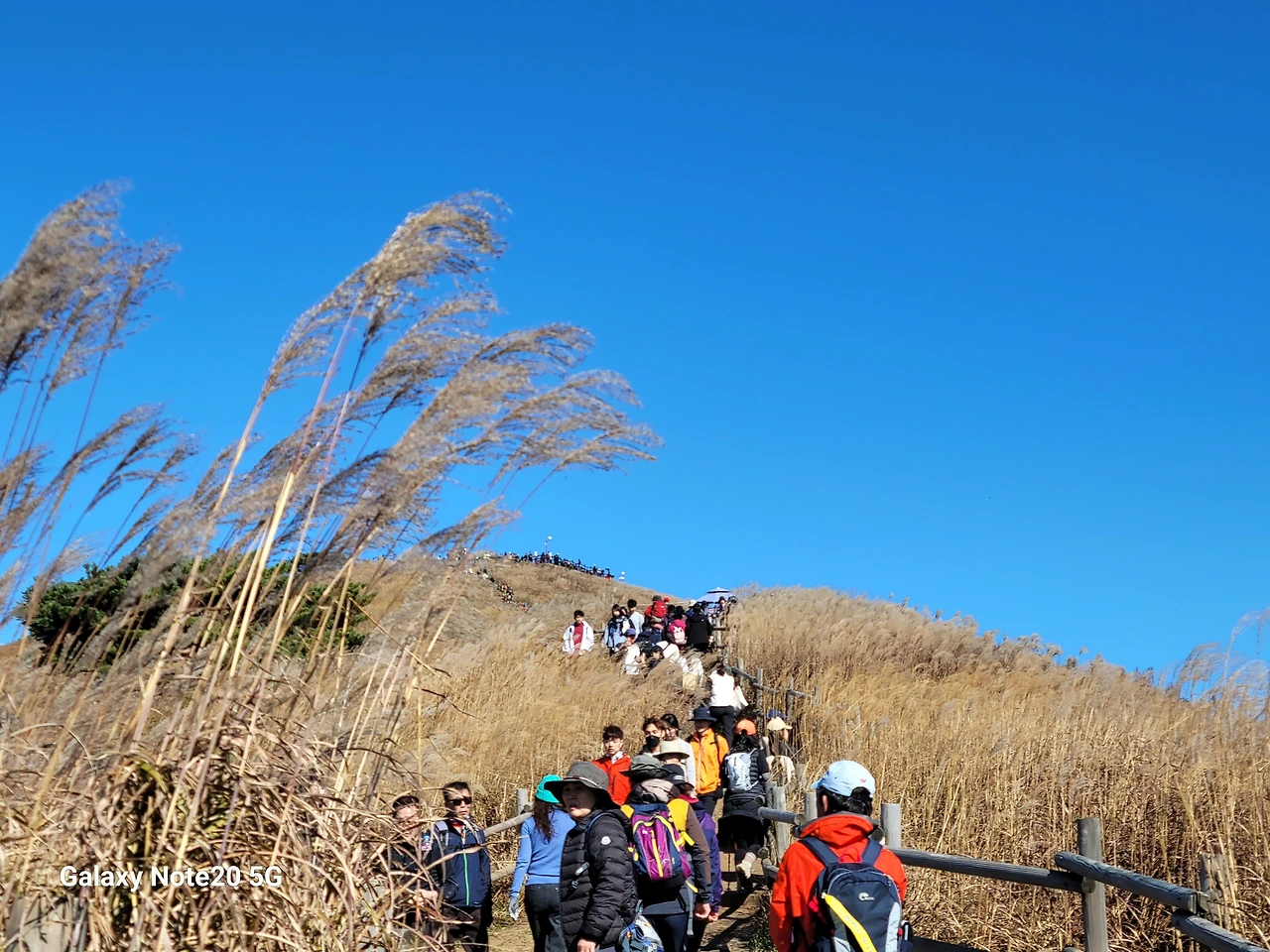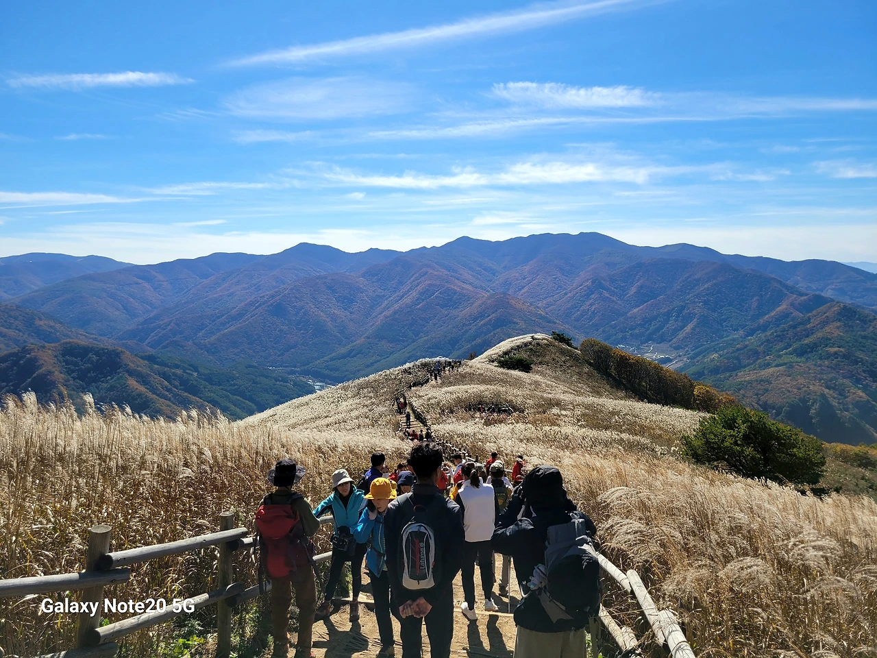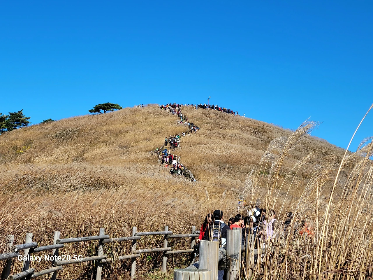 형형색색 줄지은 등산객들이 억새밭을 가르고 있었지.