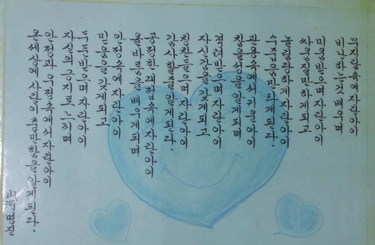 냉장고에 붙여두었던 글귀....(붓펜으로 정성들여 썼던 글)