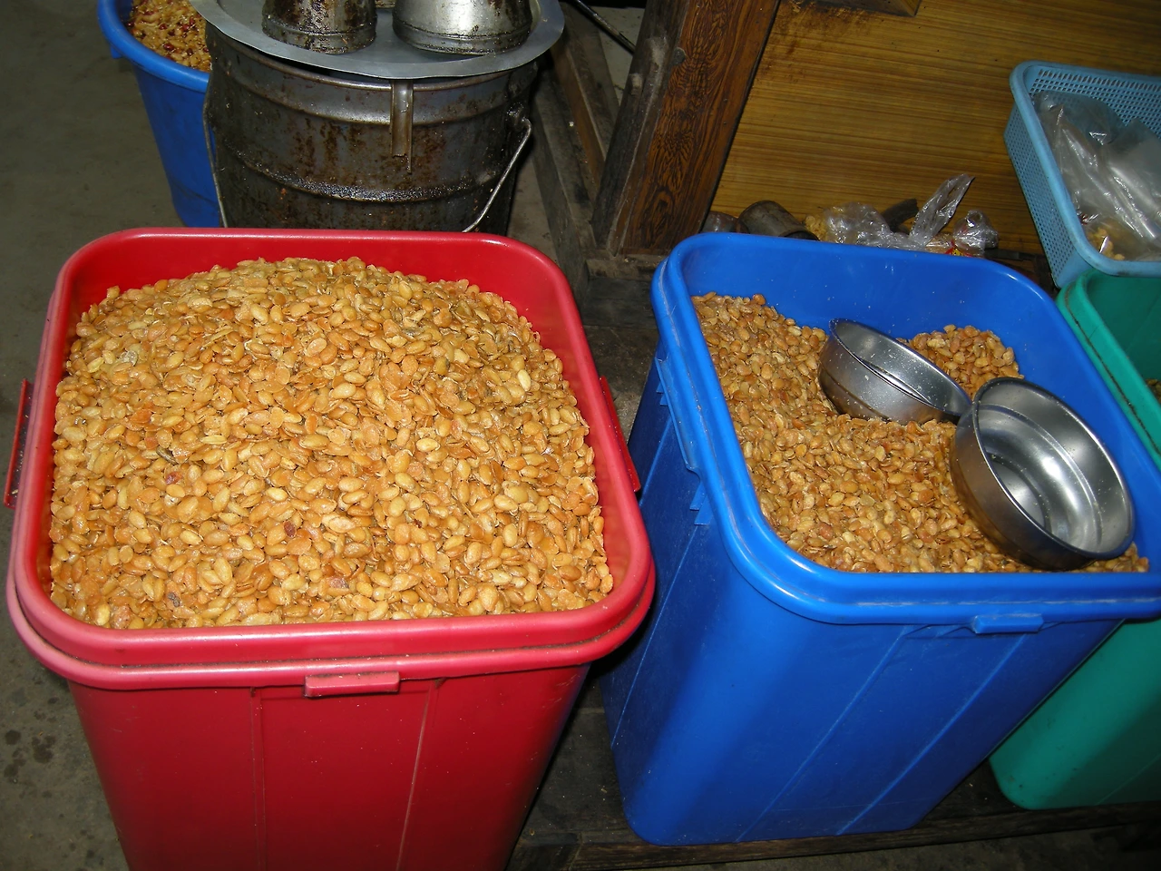 우리나라 청국장처럼 오래 발효시키지는 않지만, 뻬뾱과 마찬가지로 조금 싹틔운 콩을 삶은 후 약간 발효시켜 꾸덕하게 말려서 판다. 이걸 어떻게 먹는지 매우 궁금하였는데, 내게 이 음식의 정체를 설명을 해줄 수 있을만한 사람을 만나지 못하여 여적 궁금함을 풀지 못하였다.