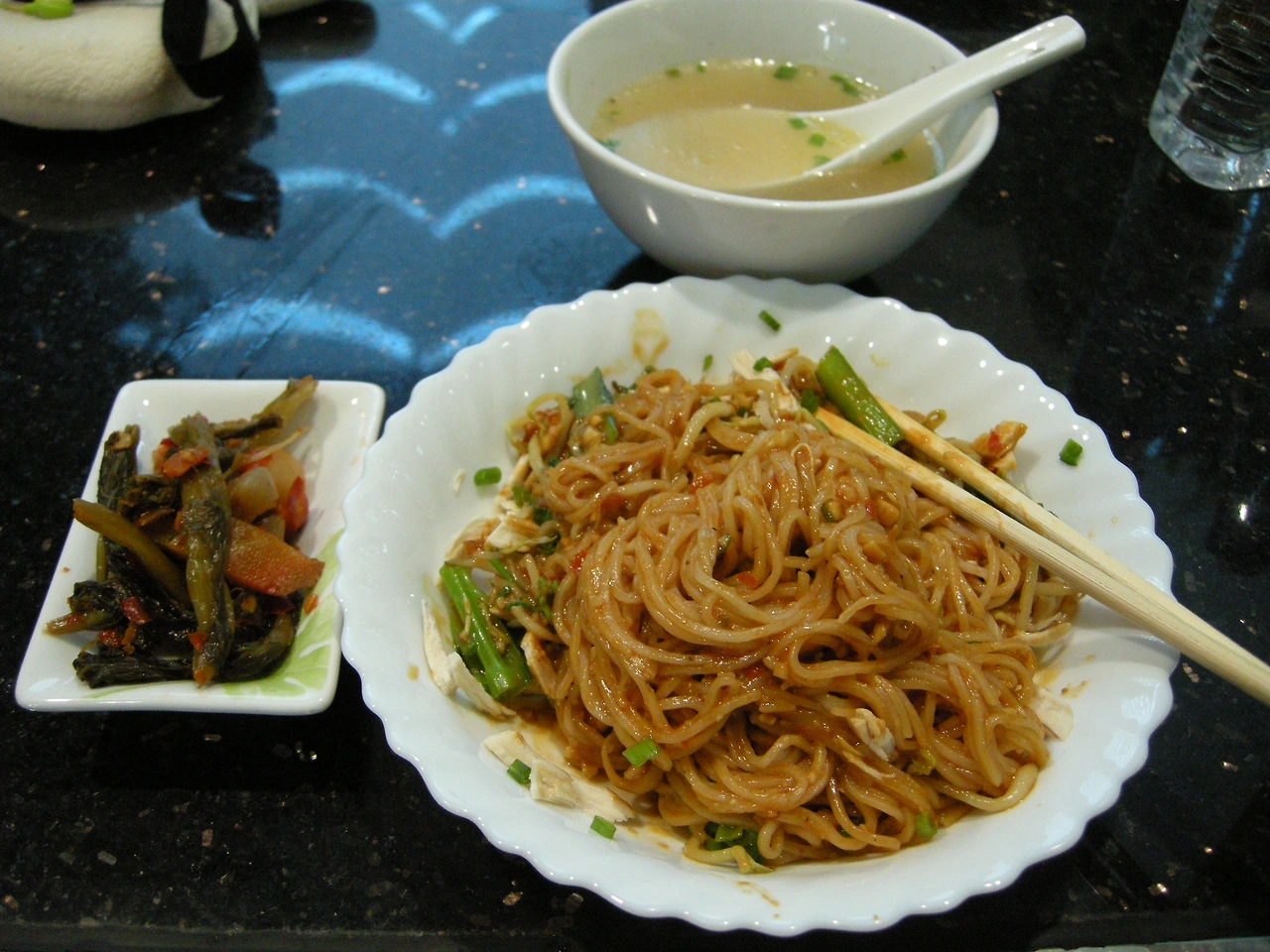 '샨 똑.' '카욱쉐 똑' 이라고도 부르며, 맛은 더도 덜도 아닌 새콤달콤한 우리나라 비빔국수. 미얀마어로 '똑'은 무침을 의미한다. 왼쪽 접시에 들어있는 음식이 김치로 보인다면, 얼추 맞다. 샨 주에서는 우리나라 식 김치와 꽤 유사한 음식을 먹을 수 있다.