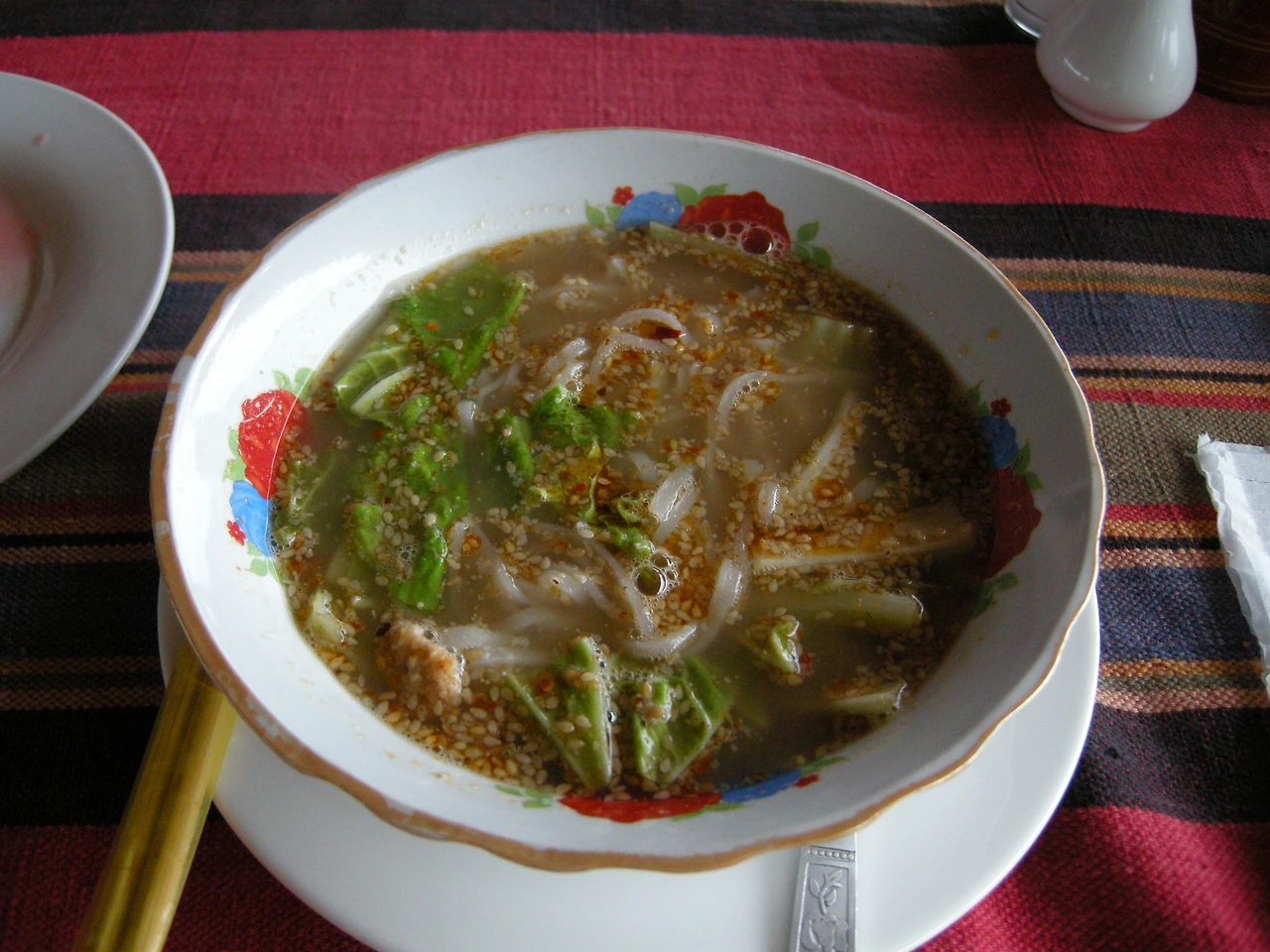 샨 국수. '샨 카욱쉐.' 인레 숙소에서 처음 먹고, 정말 좋아하게 된 음식이다. 칼국수 면처럼 좀 굵은 쌀면이어서, 식감은 밀가루 면이나 우리나라에서 흔히 먹는 쌀면하고 약간 다르다. 이후 같은 숙소에서 묵은 다른 여행자가 내게 이런 국수가 맛있다니 너는 입맛이 싸구려구나, 라고 혹평을 한 적 있었다. 숙소 무료 조식으로 나온 국수이니 뭐 얼마나 정성 들여 만들었겠나. 그 사람 말대로 내 입맛이 싸구려일 수도 있겠지만, 다른 여러 곳에서 먹어본 것보다 무료 조식 샨 국수가 더 맛있었다고 내가 말하는 이유는 국물에 들어간 배추 때문이다. 국수를 만든 이가 의도를 하였는지 어떤지는 모르겠으나, 배추 덕분에 국물이 시원하고 칼칼해서 내 입에는 좋았다. 처음 먹은 국수가 이러하여서, 나는 샨 국수 국물에는 당연히 배추가 들어가는 줄 알았는데, 이후 국물에 배추를 넣어 만든 샨 국수를 더는 본 적이 없었다.