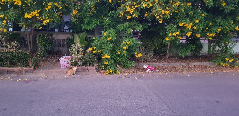 파리 떼와 한낮 더위에 지쳐 있던 연짱이의 만땅 짜증을 풀어준 고양이가 있는 풍경. 숙소 골목에서 대치 중이었다.