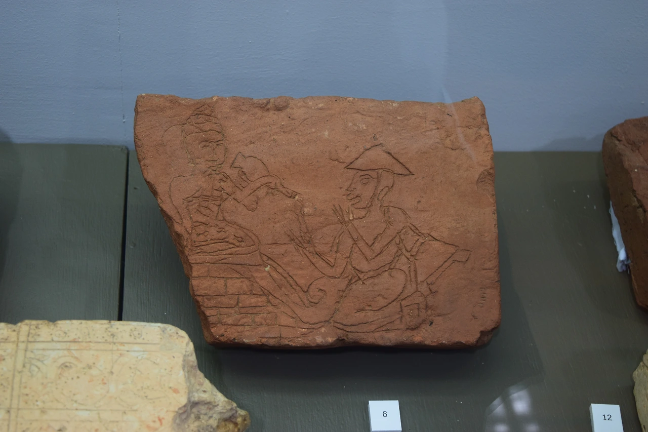 "무슨 왕자님이 후손에게 축복의 의미로 물을 부어주는 모습을 새긴 것 같은데, 왕자님이 직접 새긴 건 아닐 거고. 그냥 왕자님이 등장하는 거라 구워서 보존한 건가?"