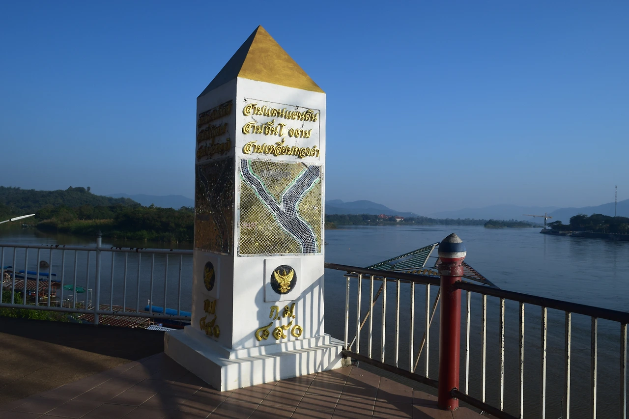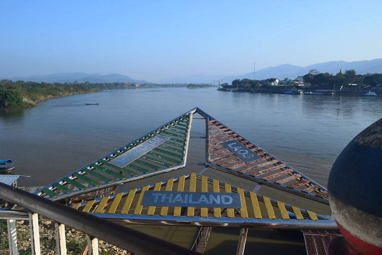 "염개미 투업니다. 왼쪽이 미얀마고요, 오른쪽이 라오스고요, 앞쪽이 태국이예요. 보시는 강은 메콩강이고요. 저기, 가시기 전에 쪼끔만 생각해주세요."