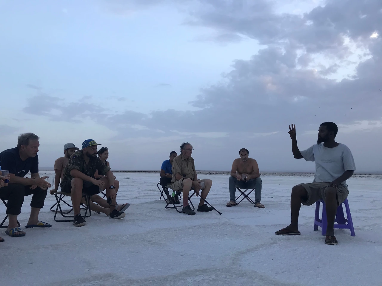 내 기억으로 사진 속 세 손가락을 펼쳐보이고 있는 - 내게 다나킬에 사는 부족의 정신적 지도자 같아 보였던 - 가이드는 무척이나 진지하고 근엄한 표정으로 다나킬에 대한 설명을 우리에게 해 주었다. 세계에서 2번째로 큰 소금사막이고, 해수면보다 수백미터나 낮은 지역에 위치하고 있으며 아직 활동중인 화산이 있으며 우리는 그곳으로 간다고 말했다. 난 멍청하게도 이 투어를 신청하고 여기 올 때 까지 사막에 또 오게 될거란 생각을 하지 못했었다. 사막이라면 지긋지긋했으니까. 사막은 뜨거운 곳이 아니라 건조한 곳임을, 그리고 밤에는 영하 50도까지 떨어질 수 있다는 사실을 우유니에서 깨달았었고, 세계에서 별이 제일 잘보이는 곳 중 하나이며, 밤하늘에 별이 잘보이는 곳에는 사막이 많다는 사실을 알려준 곳도 아타까마 사막('별에서 온 그대'에서 도민준이 고향을 그리워하며 고향을 바라보는 곳이 바로 여기)이었다. 그 이후, 사막은 가지않겠노라 다짐을 했건만, 살아있는 화산을 보겠다고 시작한 투어가 날 다시 사막으로 이끌었다. 게다가 또 다시 소금사막인 곳으로.