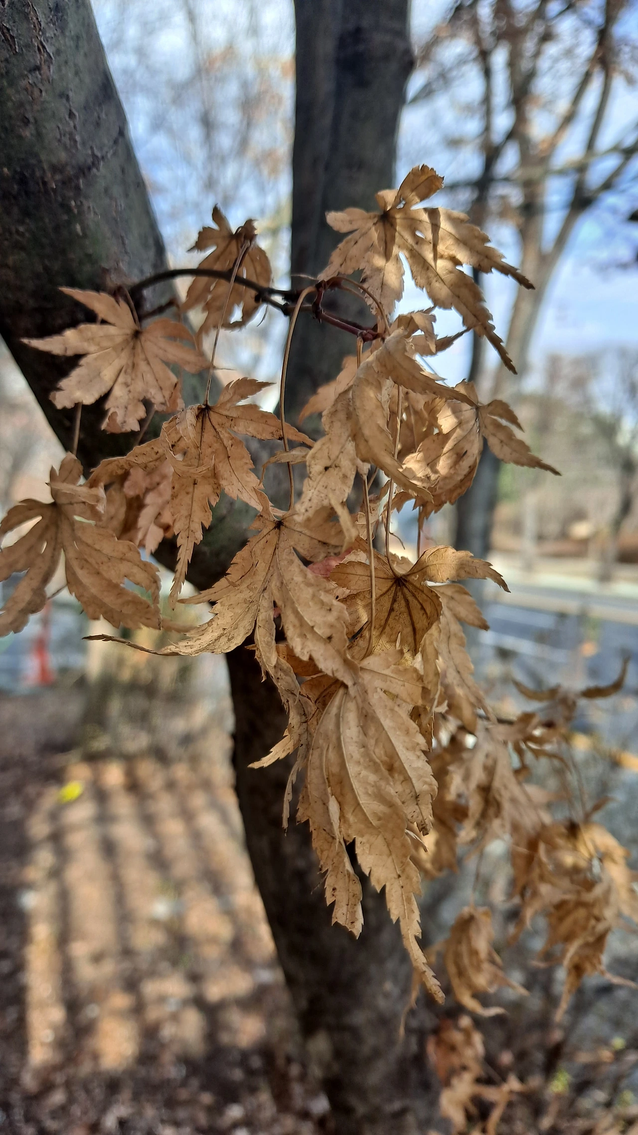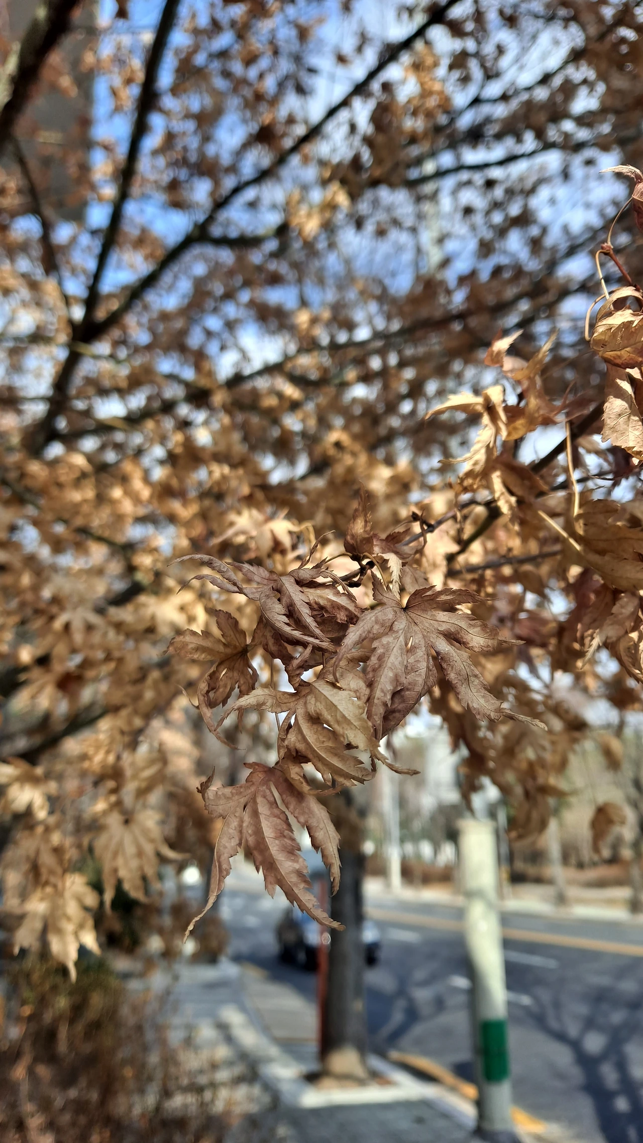 오늘 서울에서 본 당단풍나무에는 유난히 많은 낙엽 되기를 거부한 잎이 보였다.