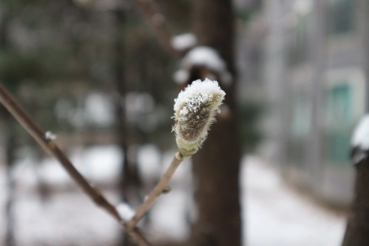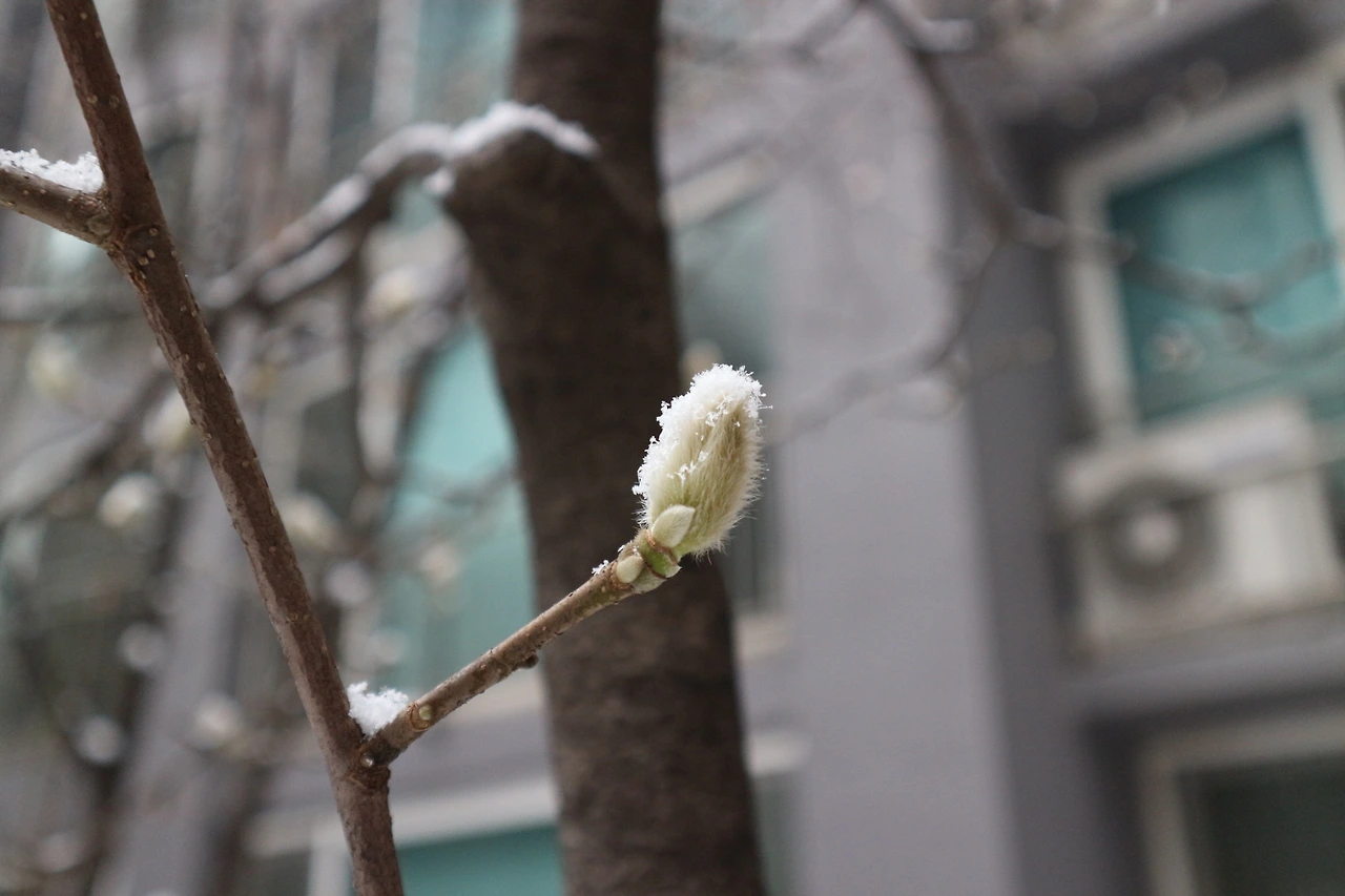기쁨 후 잠시, 올해 첫눈을 맞는 목련 꽃눈이 궁금하여