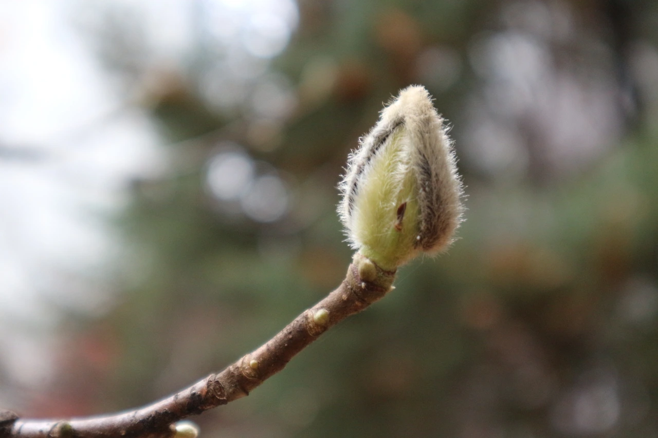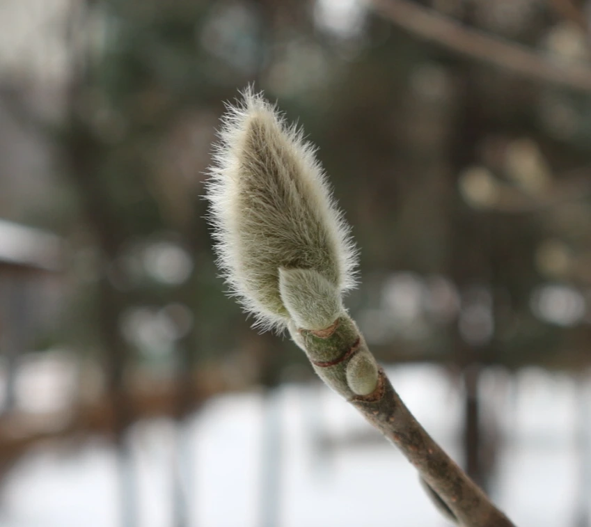 꽃눈 옆의 작은 잎눈도 따스한 털옷을 차려입었다.