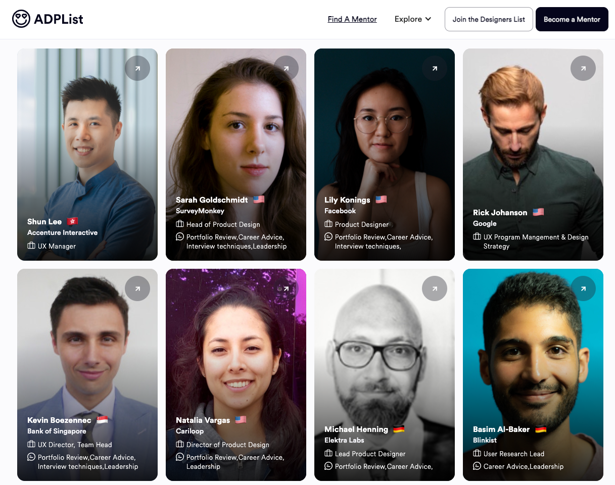 온라인 지원 때 면접 쪼금 더 잘 걸리는 것도 좋지만 -> 면접 따기 가장 확실한 방법은 리퍼럴을 받는 것. 우리 회사 (링크드인)의 75% 채용 건이 리퍼럴을 통해 진행되었다는 속설이 있다. 리퍼럴을 받으려면 현직 직원에게 부탁을 해야 하기 때문에 생판 초면인 디자이너와 수다도 떨고 네트워킹을 하여 리퍼럴까지 따낼 깡이 있어야 한다. (이 모든 것을 영어로. https://www.adplist.org/mentors 같은 곳에서 현직 디자이너분께 연락을 하여 리퍼럴을 따낼 수 있어야 한다.)