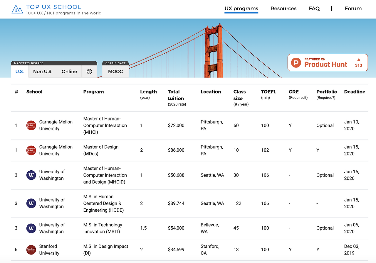 2년제 석사 프로그램은 좀 더 긴 시간을 두고 훨씬 체계적이고 완전하게 UX 디자인을 가르치며, 또한 여름 인턴십 기회도 주어져 원하는 기업 레벨에 맞춰 입사하기 훨씬 더 수월합니다. 대표적인 2년제 프로그램은 University of Washington, Georgia Tech, University of Michigan 등등 있습니다.
