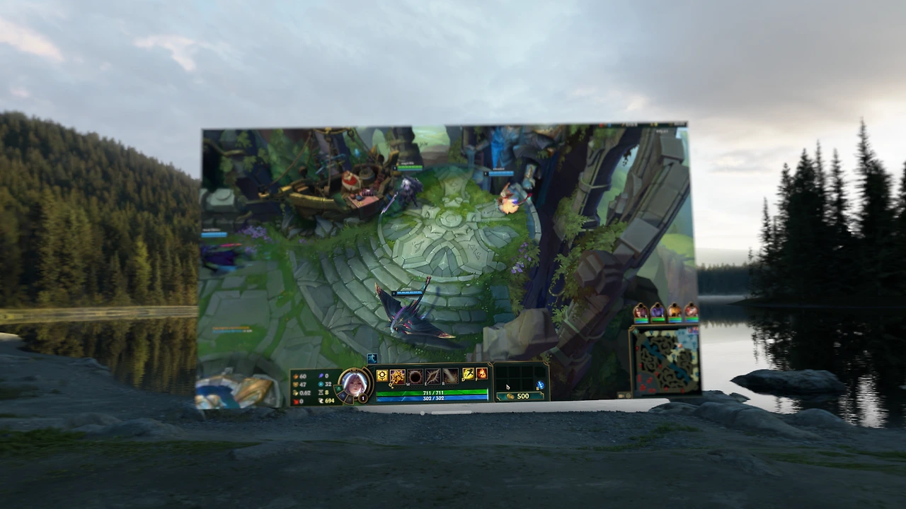 제가 또 기대했던 용도는 게임이었습니다. 리그오브레전드 게임을 즐겨하기 때문에 맥 화면공유 기능을 사용해 롤을 해보았는데요, 화면 크기가 크기 때문에 우선 몰입도는 장난 아닙니다. 그리고 딜레이 및 렉도 거의 없어서 게임하는 것 자체에는 지장이 없습니다.