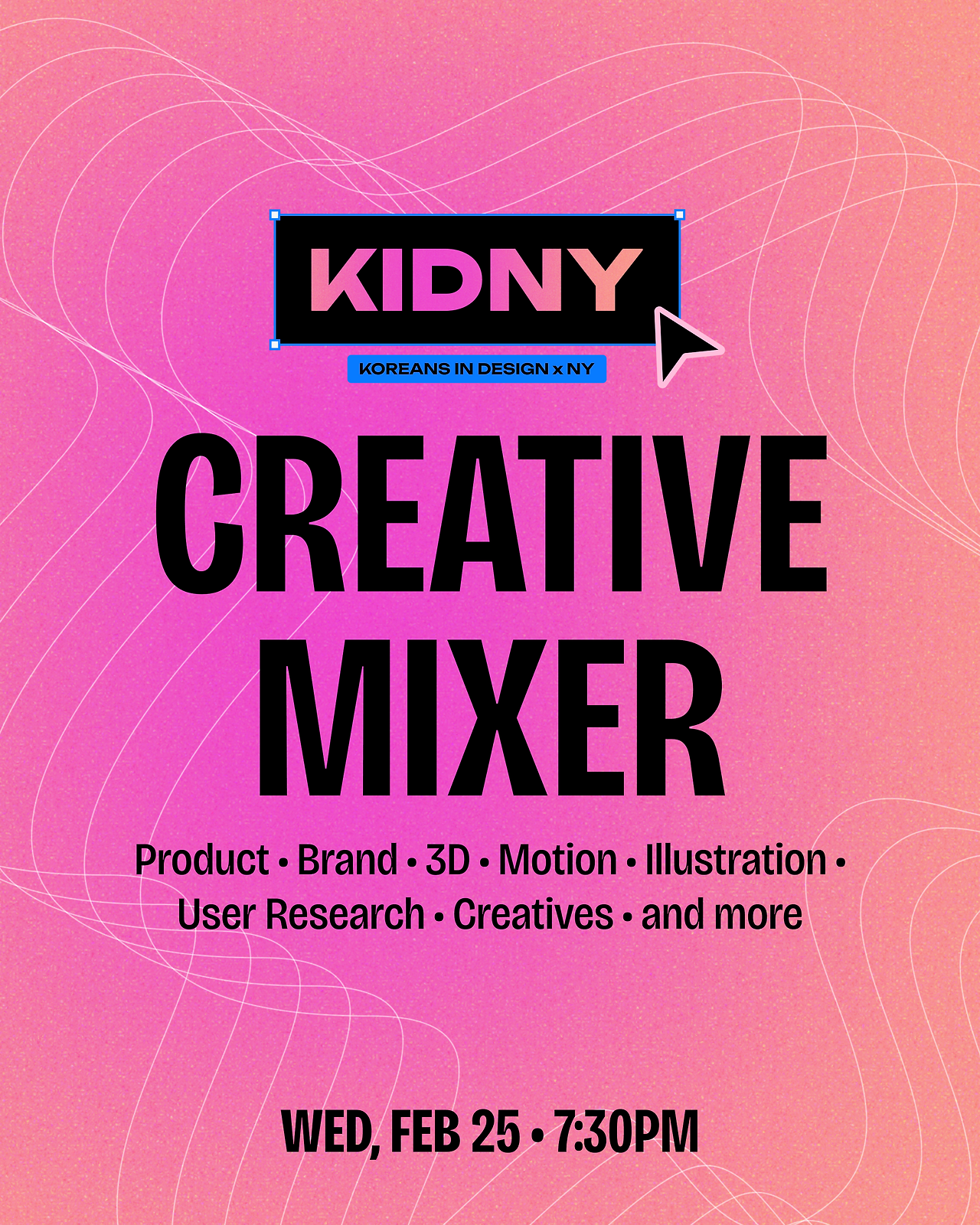 만약 2026년 2월에 뉴욕에 계신다면, 그리고 다른 현업 디자이너분들과의 교류를 찾으신다면 KIDNY 행사에 한번 와보세요! 아마 미국에서 가장 순도 높은 한국 디자이너 모임이 되지 않을까 조심스레 예상해 보고 있어요.