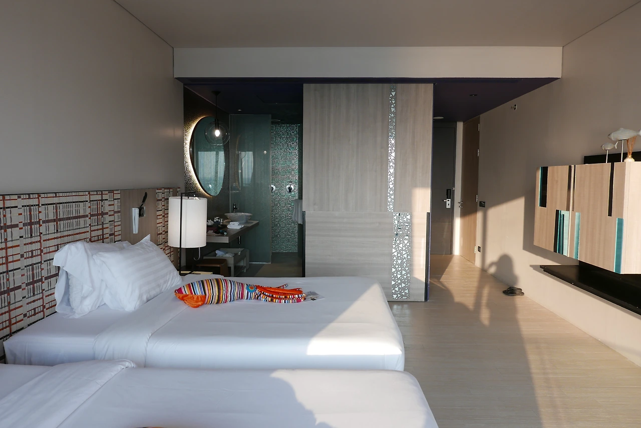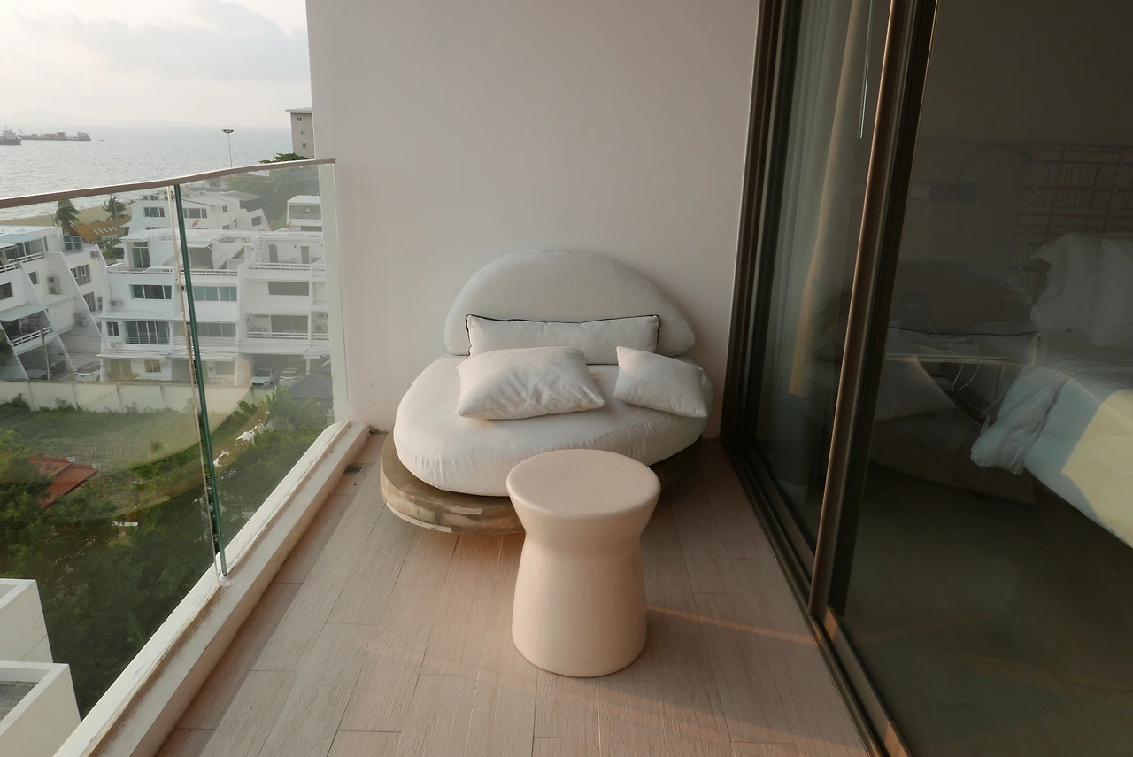 지금까지 묵었던 숙소 중에 가장 뷰가 아름다웠던 곳이에요. 방을 떠나기가 아까울 정도였어요. 8층 오션뷰라서 시아를 가리지 않아 더 좋았어요. 첫날 도착해서 선셋을 바로 봤는데 너무 아름답더라고요. 첫날 시간이 붕 떠서 해변에서 사진을 못 찍어 아쉽긴 했지만 그래도 너무너무 만족스러웠던 파타야의 첫인상이었어요. 오션뷰 룸은 트윈베드에 저 혼자 사용하는 룸이라 다음날엔 청소를 부탁하지 않았어요. 리조트에서 하루 종일 수영하고 놀다가 저녁시간 맞춰서 맛있는 거 먹고 마사지받으면 딱 좋은 리조트 루틴이 될 거 같더라고요.