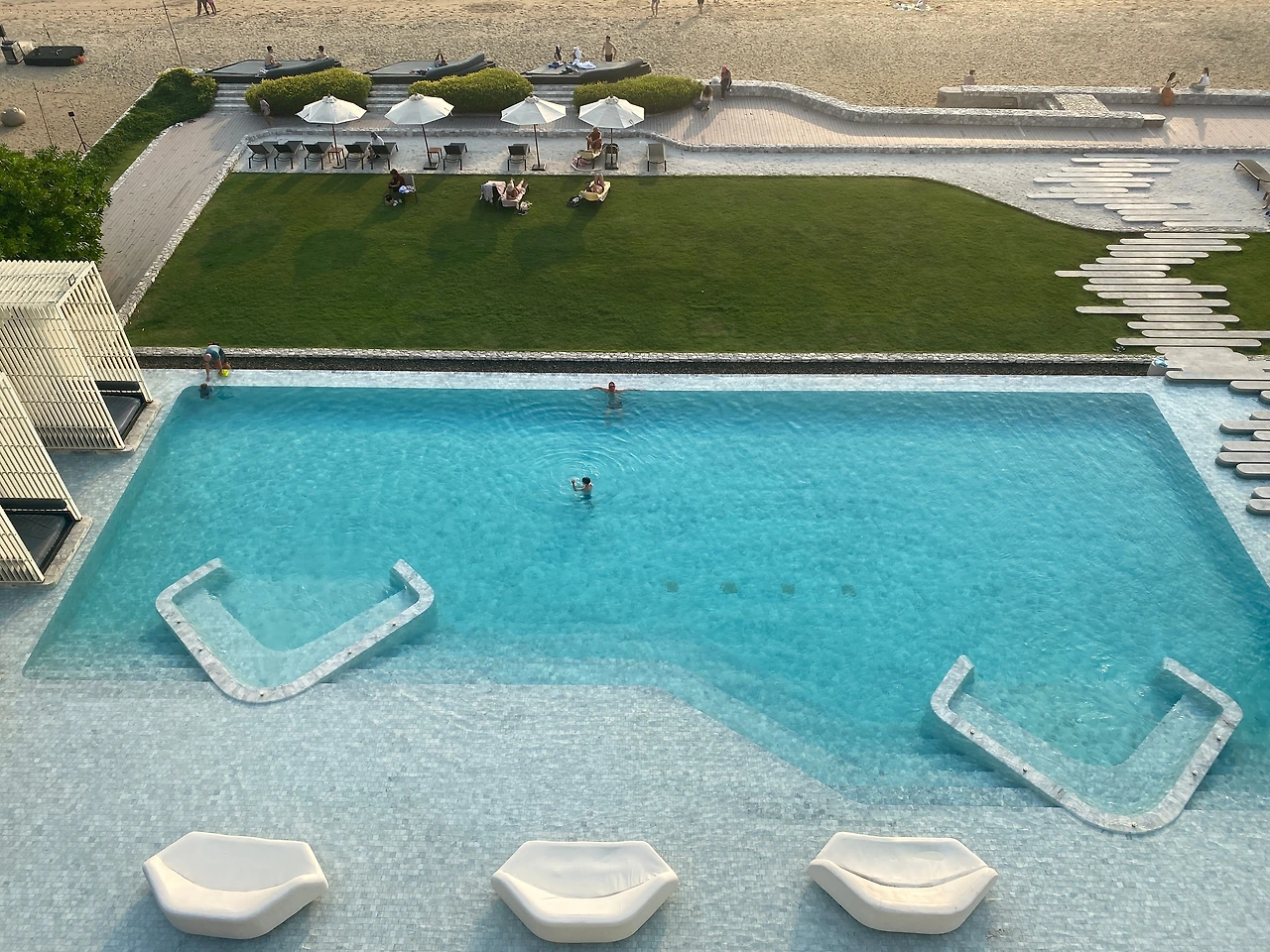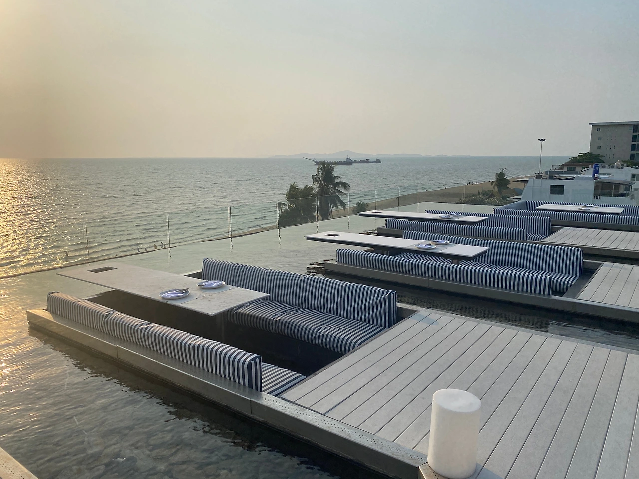 방콕과 파타야에서 묵었던 곳의 수영장이 예뻤지만 저는 수영복을 입지는 않았어요. 아무도 신경 쓰지 않지만 내가 신경 쓰이는 나의 몸이기 때문에 도저히 입지 못하겠더라고요. 베란다 리조트 수영장은 선셋이 너무 예쁘기도 하여 살짝 후회가 남을 거 같기도 하지만 내 몸이 더 싫은 걸 어떡하지? 한국에 돌아가 건강한 라이프 스타일을 즐기자는 다짐만 하고 오게 되었어요. 건강한 음식과 다이어트가 아닌 몸의 탄력과 균형을 위해 근력운동을 해야겠다.