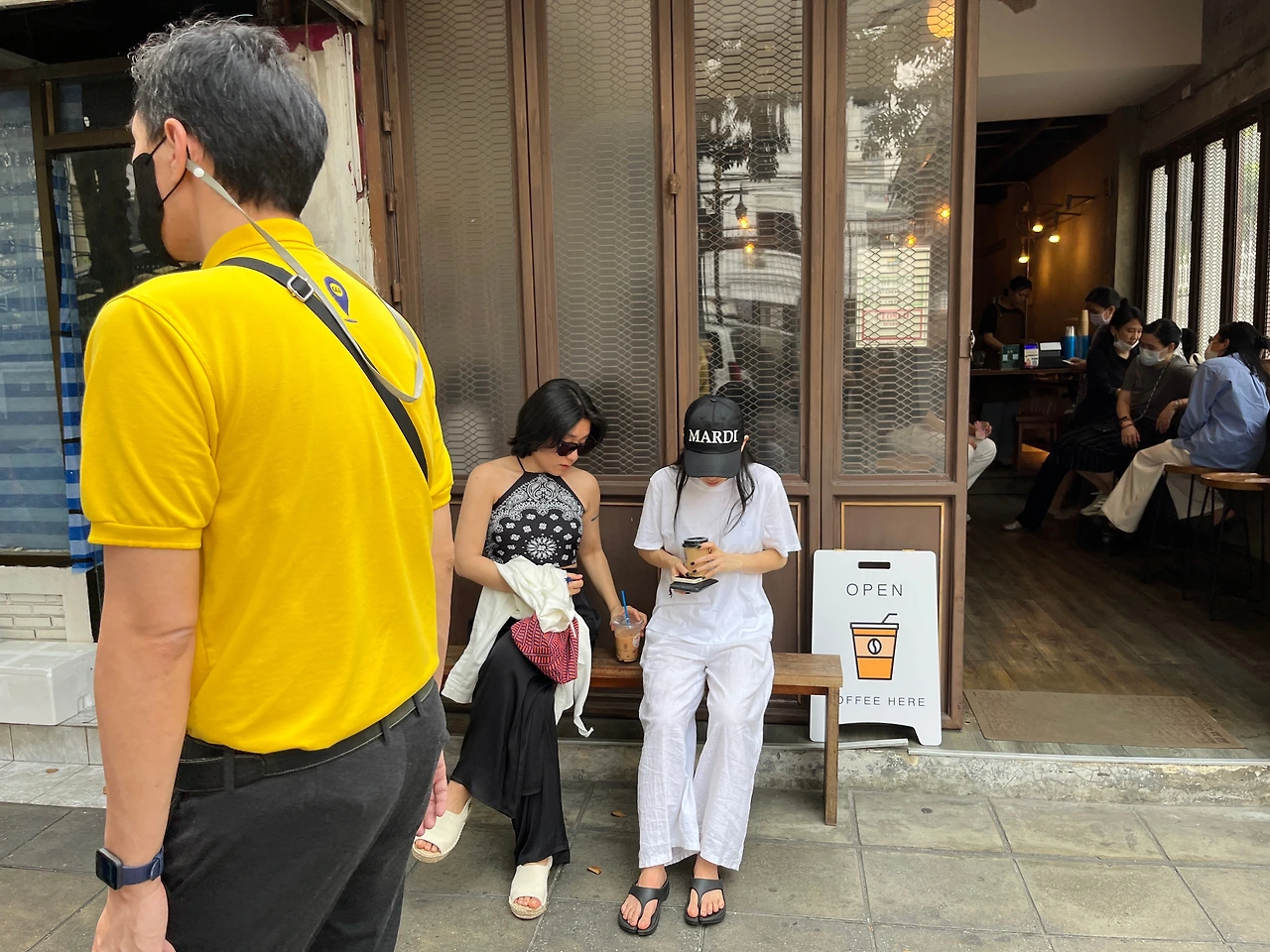 마사지를 받고 커피 한 잔을 하기 위해 컨벤트커피로 향했어요. 문래동에 있을법한 분위기의 작은 카페였어요. 여기는 직장인들에게 인기가 좋은 곳이더라고요. 조식을 먹고 발 마사지를 받고 오니 직장인들의 점심시간과 겹쳐서 방콕 직장인들이 점심을 먹기 위해 거리로 나오는 모습까지 보게 되어 좋았어요. 아직은 방콕에서 뭔가를 주문하고 바트가 익숙하지 않아 적응하는 단계였어요. 커피를 들고 택시를 잡기 위해 거리로 나오면서 로컬 맛집도 발견하고 길바닥에 누워있는 개도 만나고 택시가 안 잡혀 뚝뚝이를 탔어요.