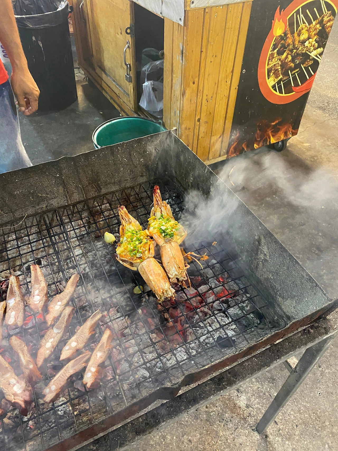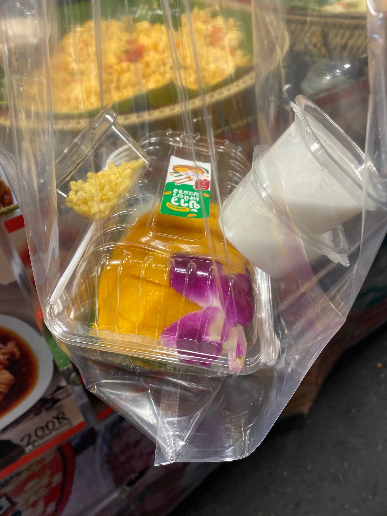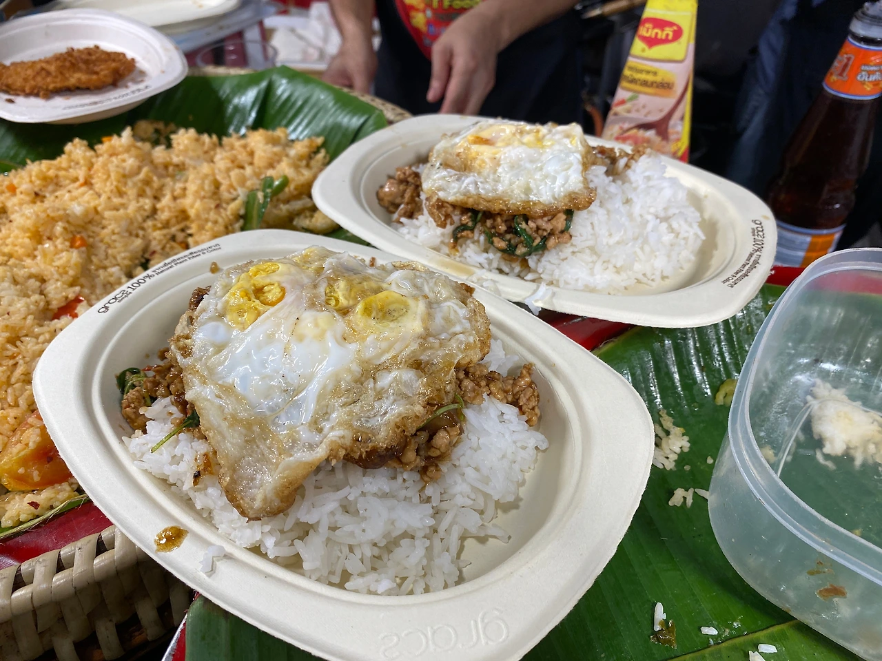 수완나품 공항에 9시쯤 도착하고 호텔에 도착해 짐을 풀고 나니 11시가 넘어서 갈 곳이 마땅히 없어 팟퐁 야시장에 가기로 했어요. 팟퐁야시장도 곧 문을 닫을 시간이라서 마감 중인 곳이 많았어요. 제일 처음 망고 밥이 보여서 80바트를 주고 구매했어요. 열심히 요리하는 남자분이 보여서 여기서 다들 1 메뉴씩 주문을 했어요. 저는 크림치킨똠양 120바트주고 주문했어요. 수박주스(땡모반)도 50바트주고 사다 주셔서 시원하게 마셨어요. 땡모반을 처음이자 마지막으로 마셨네요. 1일 1땡모반 할 줄 알았는데 망고밥도 1일 1망고밥하고 싶었는데 이후로 못 먹어서 아쉬웠어요. 빠른 식사를 끝내고 택시를 타기 위해 시장을 걸어 나오는데 방콕이구나! 했습니다.