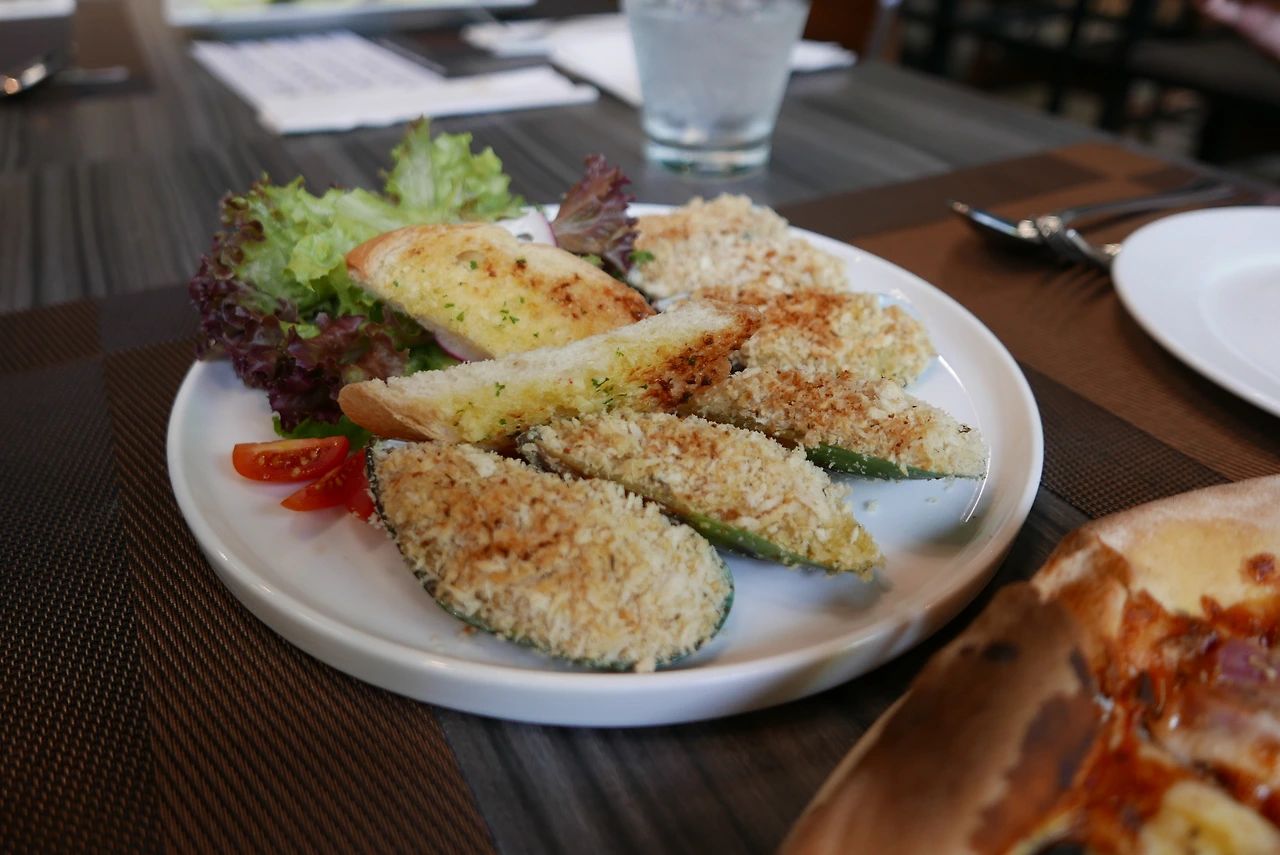 나 좀티엔 해변을 보면서 먹으면 더 좋았을 거 같은 더 글라스 하우스에 마사지를 끝내고 곧장 왔습니다. 선크림도 바르지 않고 얼굴도 준비가 안 되어서 빨리 먹고 빨리 돌아가 세팅을 하고 싶었지만 막상 음식이 나오니 모든 메뉴가 균일하게 맛있어서 좋았어요. 공간도 엄청 넓고 크고 다 둘러보기에도 시간이 좀 걸릴 거 같았어요. 3~4시경에 찾았지만 6~7시경에 도착하면 아름다운 선셋을 보면서 칵테일도 마시고 맛있는 해산물 요리 즐기기에 좋을 거 같았어요. 바다를 바라보면 12시까지 즐기기에 아주 딱이었어요.
