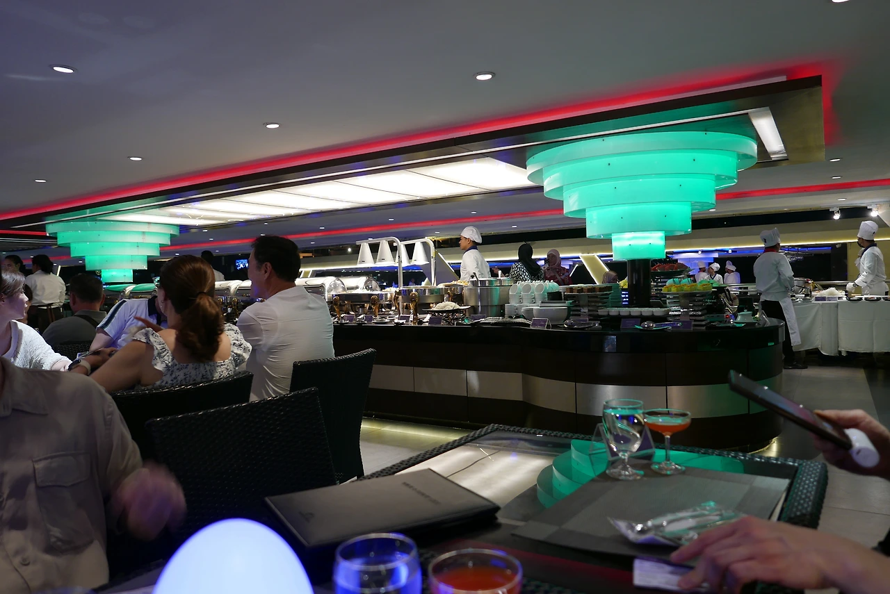 시간이 여유롭다면 하나하나 다 직접 찾아가 둘러보면 좋겠지만 시간이 빠듯할 때는 이렇게나마 둘러보는 것도 추천드려요. 차오프라야 프린세스 디너 크루즈를 탑승하게 되어 의상에 대한 정보는 미리 준비해 갔어요. 남자는 긴 바지와 발가락이 안 보이는 신발과 같은 옷을 준비해야 하니 미치 체크하시면 될 거 같아요. 이다음에 갈 뱀부바도 입장이 안 되는 의상이 있어서 함께 일정을 잡으면 좋겠더라고요. 탑승 전에 연주해 주는 곡 듣는 재미가 있다던데 저희는 Uptown Funk 연주해 주셨어요. 음식 맛은 일반적인 뷔페 음식 수준이었어요.
