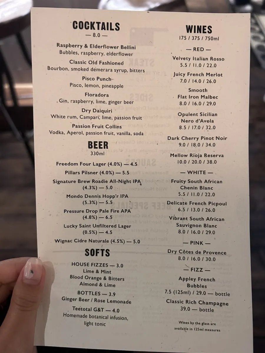 첫째, 가격이 합리적이다. 고기만 13파운드! 소스랑 에이드랑 수프 추가하면 10파운드! 20파운드 ~ 25파운드 사이로 먹을 수 있다. 내가 여행했을 당시 환율로 따지면 1파운드가 1600원이어서 35000원 정도에 먹을 수 있었다.