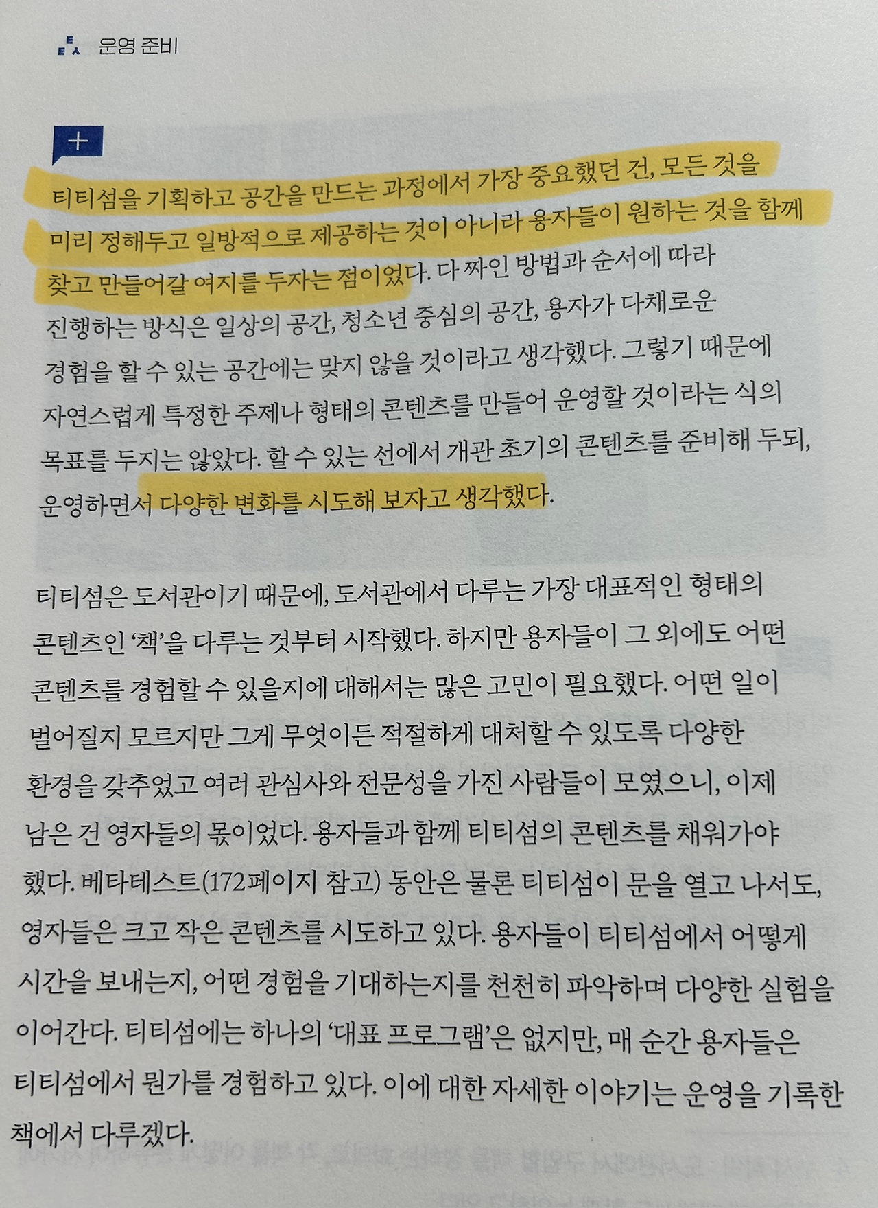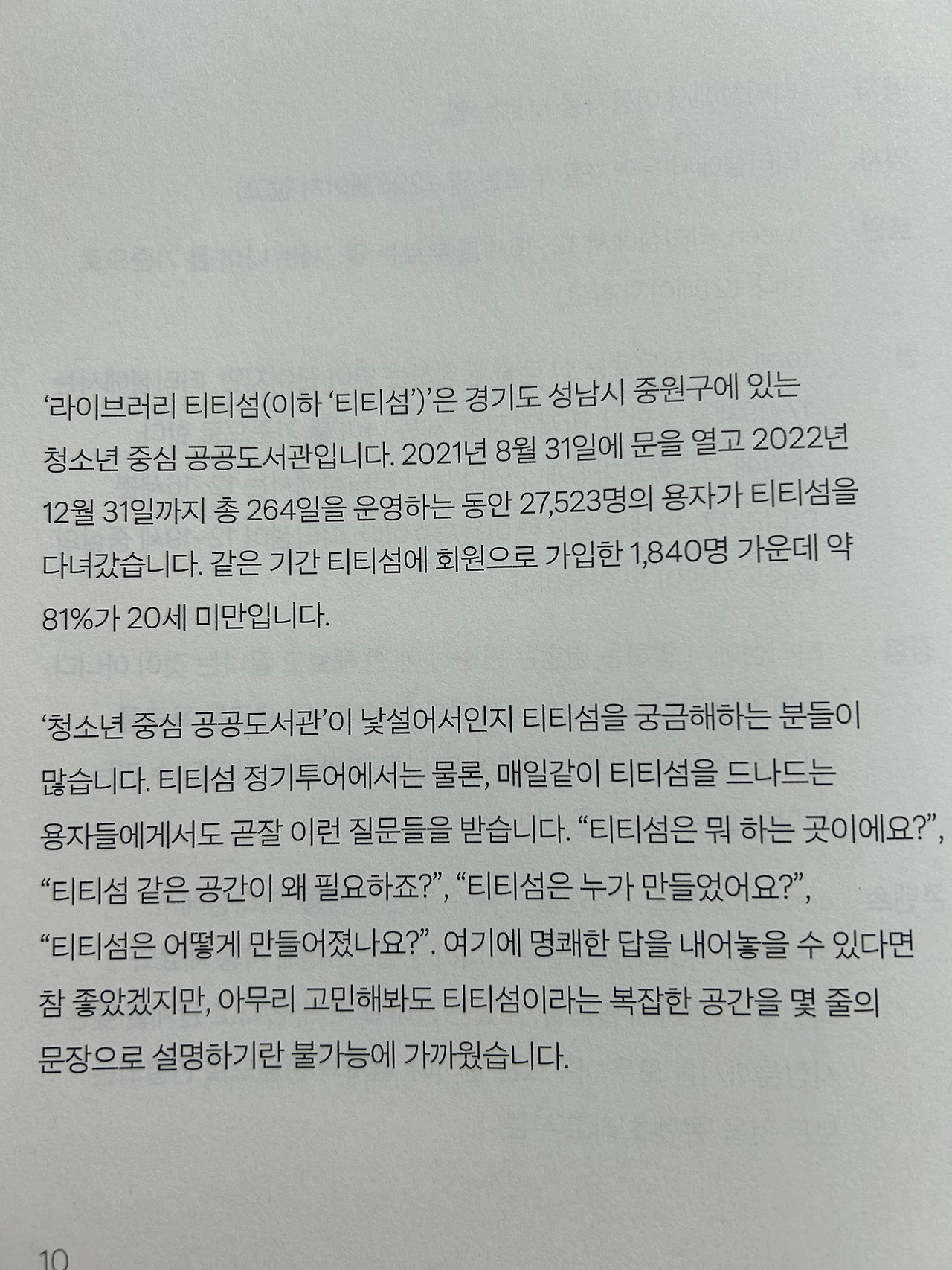 어른이 된 나는 이제 티티섬에 들어가지 못 하지만, 내가 중학생 때 이런 공간이 있었다면 정말 잘 활용했을 것이라는 생각이 든다. 또한 이 티티섬을 기획할 때 실제 청소년들도 같이 참여했다는 점이 핵심이다.