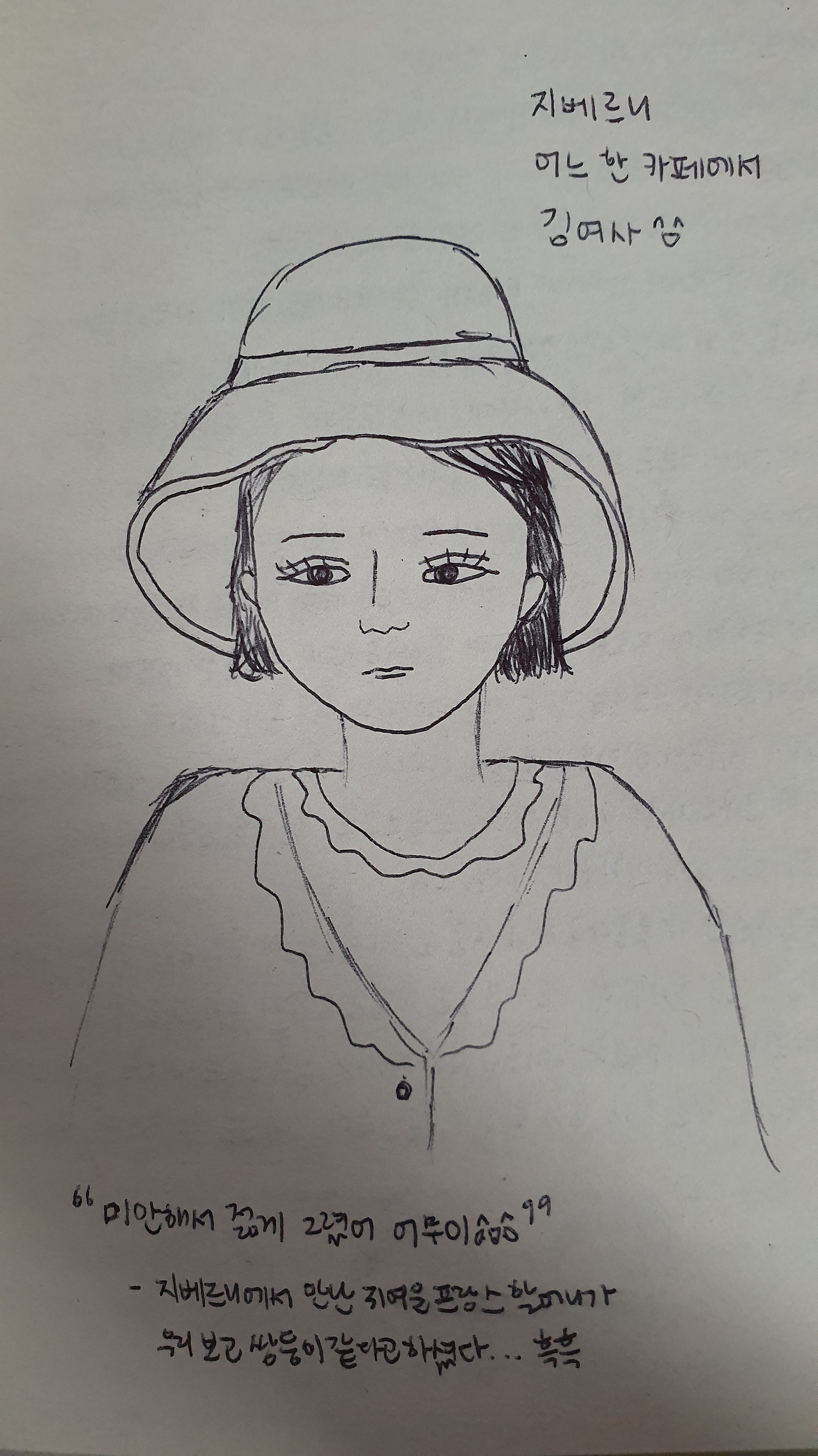 화창한 날씨와 달리 꿀꿀해진 기분으로 도착한 지베르니 - 모네의 집, 정원, 그리고 마을은 너무나도 예뻤다. 그럼에도 꽁-하게 있다가, 무려 33살 차이나 나는 엄마와 나를 보고 쌍둥이 같다고 하신 한 귀여운 프랑스 할머니 덕분에 피식 웃고는 금세 아무 일 없던 것처럼 모네의 집과 정원 곳곳을 구경했다. 잠시 쉬러 들어간 지베르니의 어느 한 카페에서는 모네에 빙의해 엄마의 초상화를 그리기도 하면서.