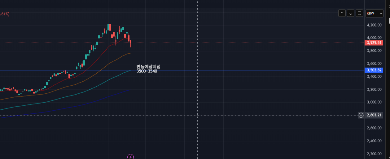 KOSPI 반등예상지점 3500~3540 일봉 기준 앞전 캔들보다 큰 거래량 실린 양봉확인후 매수