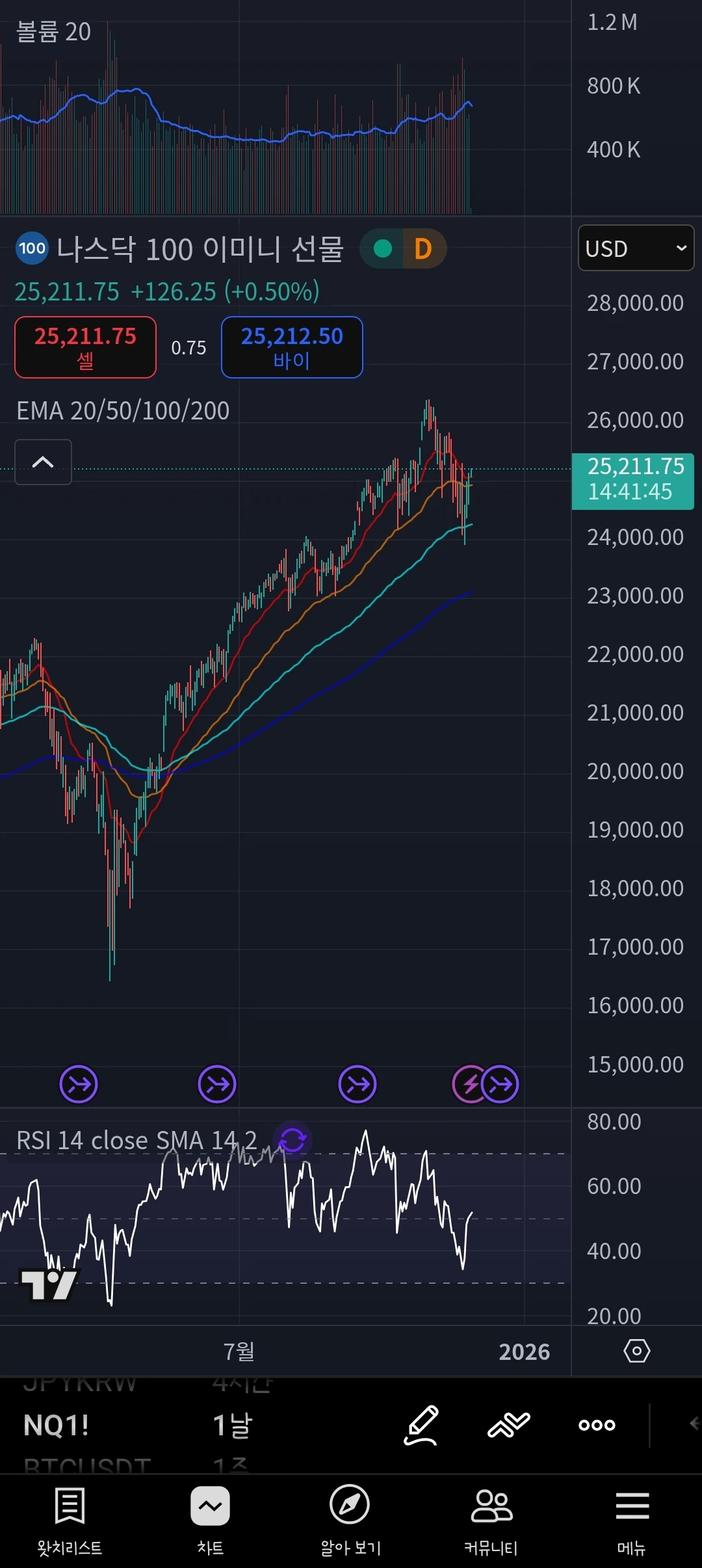 100일 EMA의 지지력: 최근 며칠간의 가격 흐름을 보면, 주가가 일시적으로 하락했으나 100일 지수이동평균선 부근에서 정확히 지지를 받고 반등(Rebound)하는 모습입니다. 꼬리가 긴 캔들이 발생한 것은 저가 매수세(Dip Buying)가 유입되었다는 방증입니다.
