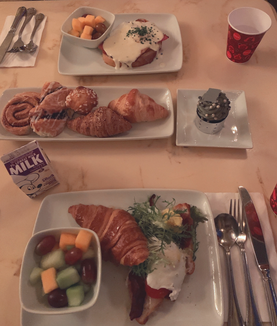 이곳은 미녀와 야수가 아름다운 드레스를 입고 춤을 추던 대형 연회장, 마법에 걸린 장미가 있는 야수의 방, 벨의 도서관 콘셉트의 공간으로 꾸며져 있는데 그중 나는 연회장의 창가 쪽에 자리를 잡았다. 커다란 창문 너머로 함박눈이 쏟아져 내렸다. 날씨 따뜻한 플로리다에서 눈송이가 떨어지는 미녀와 야수의 성에 앉아 식사를 하다니 모든 것이 마법 같았다. 게다가 빵으로 유명한 프랑스 답게 이곳의 빵과 음식들은 하나같이 정말 맛있었다. 편안함, 우아한 분위기, 맛있는 음식까지 삼박자를 고루 갖춘 Be our Guest는 디즈니월드의 레스토랑 중 내 기준에서 가장 좋았던 레스토랑에 속한다.