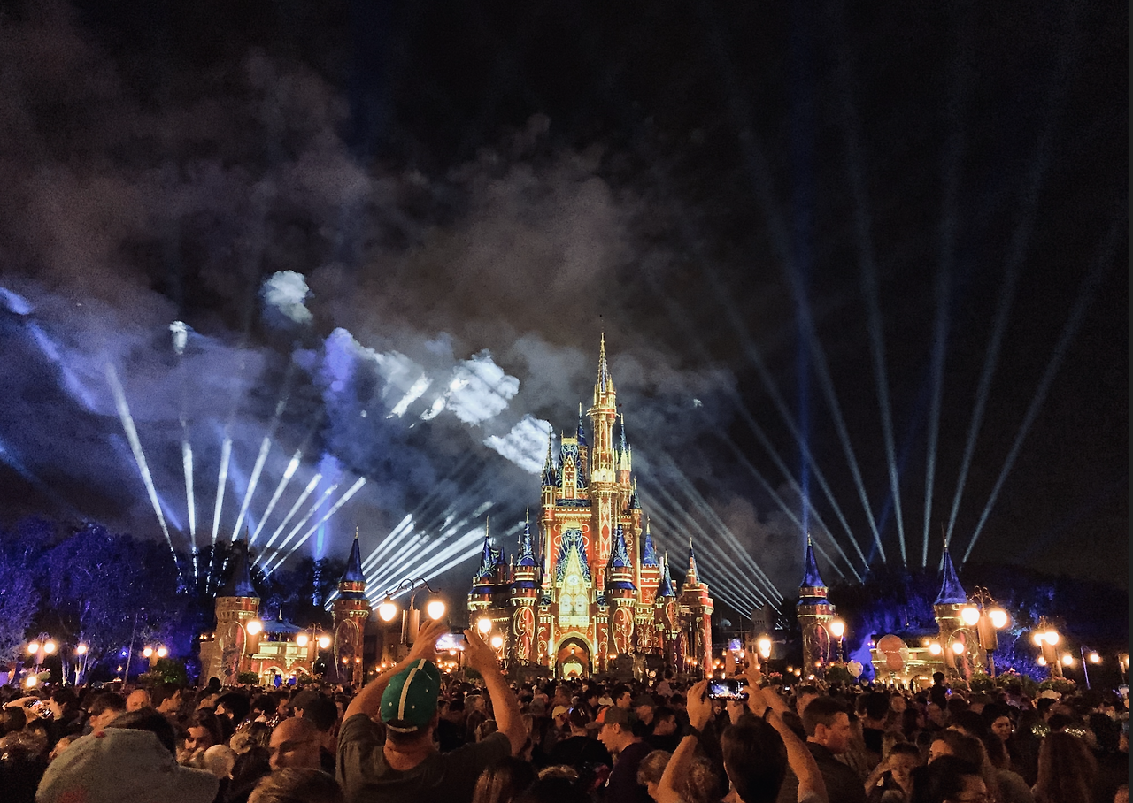 정확히 8시가 되자 쇼가 시작되었다. 디즈니 ost가 울려 퍼지며 라이온 킹, 인어공주, 알라딘, 미녀와 야수, 모아나, 겨울왕국까지 유명 디즈니 애니메이션의 하이라이트 장면들이 프로젝션 맵핑으로 신데렐라 성에 선명하게 맺혔다. 그 모습을 보고 있자니 방금 전까지 저려왔던 다리는 신기하게 하나도 아프지 않았다. 디즈니 애니메이션의 황금기였던 90년대에 어린 시절을 보낸 나는 익숙한 노래들과 마법같이 살아 움직이는 디즈니 캐릭터들을 모습을 보며 어린 시절로 돌아간 듯 감동에 젖었다. 신데렐라 성의 형태에 딱딱 맞춰 움직이는 대형 프로젝션 맵핑 기술은 특유의 압도감으로 콘텐츠가 주는 감동을 극대화했고 사람들은 탄성을 지르며 쇼가 진행되는 약 20분 동안 디즈니 애니메이션과 함께한 행복한 추억 속으로 빠져들었다.