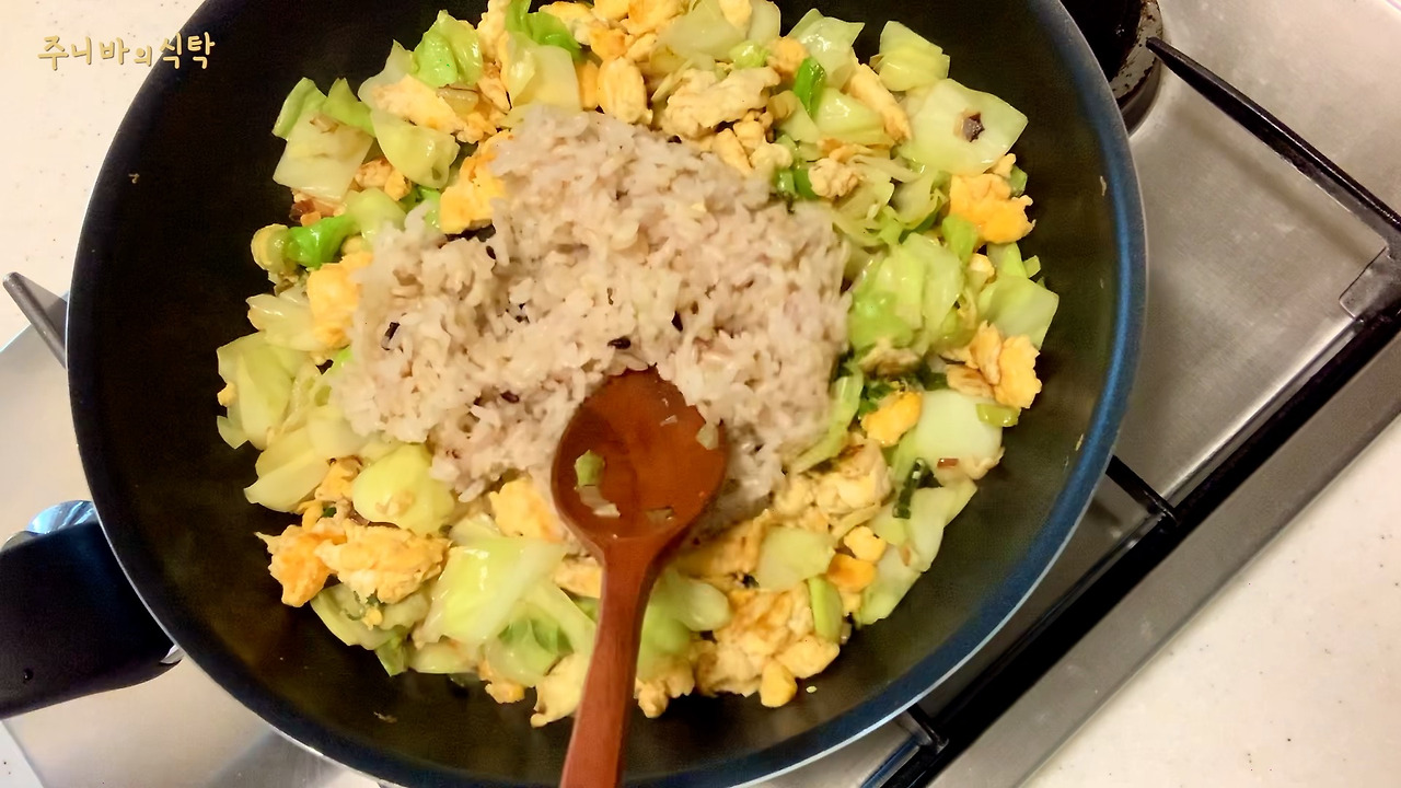 유튜브 <주니바의 식탁> 링크 겉은 불맛, 속은 촉촉! 속 편한 초간단 양배추 계란볶음밥