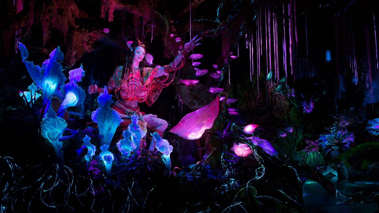 동굴의 양 벽과 하늘까지 가득 채운 발광하는 판도라의 생명체들은 신비로운 분위기를 자아냈고 숲 속 여기저기 움직이는 나비족의 모습들이 실제인 양 실감 나게 보였다. 나비족과 동물들이 움직이는 영상은 홀로그램 같은 느낌인데 아마도 공간과 잘 어울리도록 설계한 프로젝션 맵핑으로 구현된 것일테다.