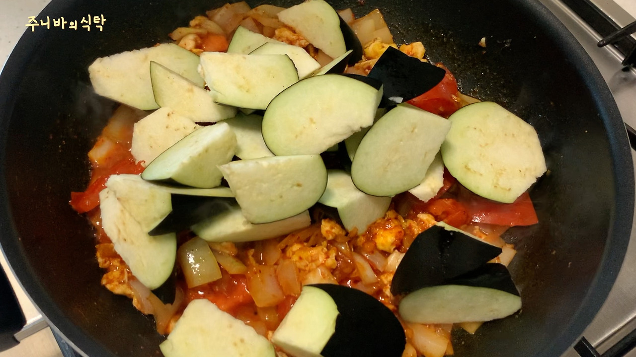먹고 싶은 재료들은 있는데 마땅한 요리법이 떠오르지 않으면 일단 볶는다. 볶으면 맛은 평타는 친다. 이번엔 내가 좋아하는 가지와 토마토, 이들과 잘 어울릴 것 같은 계란과 양파를 넣어 볶았다. 맛이 있을까 살짝 걱정하며 가지를 한 입 베어 무는 순간, 입 안에서 팡팡 터지는 가지즙에 감탄사가 절로 나왔다.