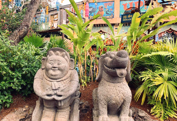 애니멀킹덤은 디즈니월드 내에서도 유난히 자연경치가 좋은 편이라 곳곳에 예쁜 자연경관과 함께 사진 찍고 쉴 수 있는 뷰포인트들이 많았다. 게다가 친환경적인 자연 풍경과 어우러진 이색적인 인테리어와 각종 장식들, 나무에 새겨진 섬세한 조각들까지 진짜 아프리카나 아시아의 어딘가에 온 듯한 각 구역별 공간 연출의 디테일은 자꾸만 발길을 끌어당겼다. 덕분에 나는 훗날 펼쳐질 체력 고갈 따위를 고려하지 않은 체 여행 첫날부터 여기저기를 쉴 새 없이 뛰어다녔다.