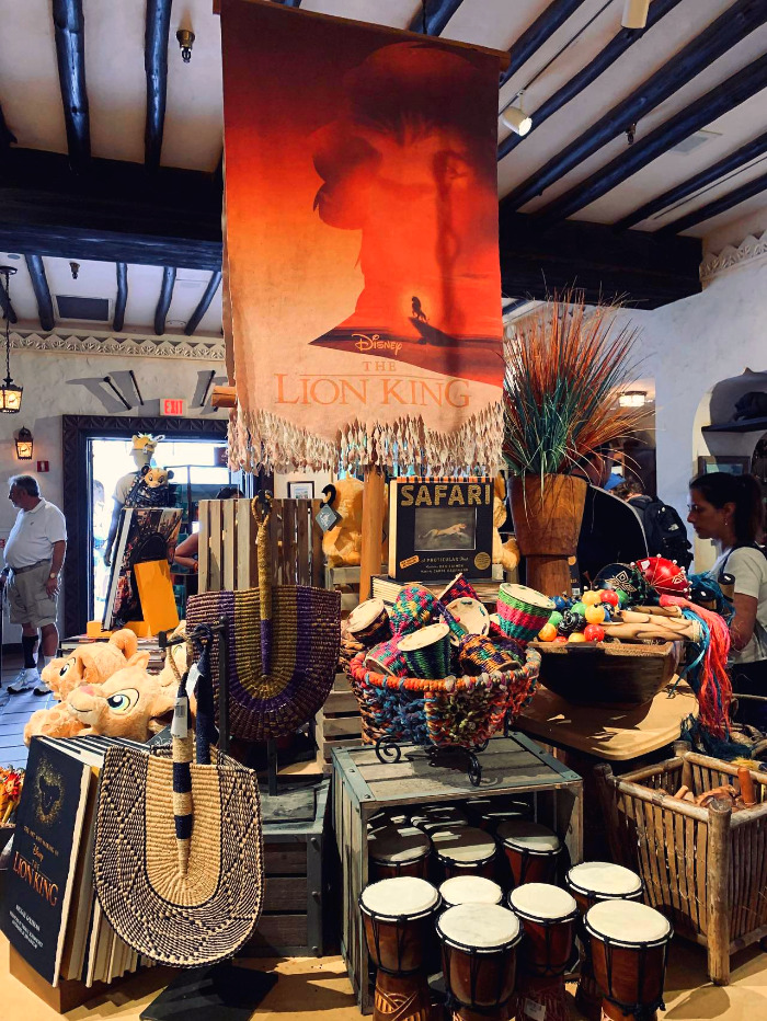 열쇠고리부터 문구류, 인형, 아프리카 분위기의 작은 타악기와 가면 등 지인에게 선물하기에도 좋은 퀄리티 높은 라이온 킹 기념품들로 가득하다. 라이온 킹 캐릭터들이주는 상징성이 뚜렷해서 그런지 다른 샵보다 볼거리가 많고 굿즈의 다양성도 높은 편이다. 샵 구석구석 꾸며진 아프리카 분위기의 인테리어 역시 라이온 킹 캐릭터들과 조화롭게 잘 어우러진다.