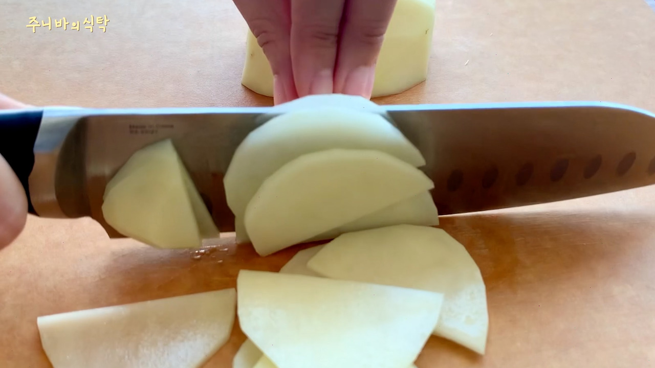 역시 전을 좀 부쳐볼까 생각하며 부엌을 뒤졌다. 얼마 전 시장에서 사 온 감자와 애호박이 남아있었다. 날이 슬슬 더워지기 시작하는 6월은 감자가 가장 맛있는 때다. 포실포실한 제철 감자와 익힐수록 달달한 애호박을 함께 전으로 부쳐먹으면 썩 잘 어울릴 것 같았다.