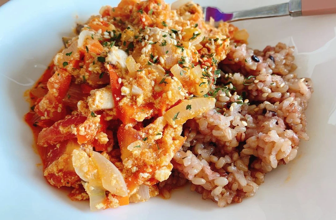 아침에 토마토와 달걀이 좋은 건 유명하다. 달걀의 단백질과 풍부한 영양소는 잠자는 동안 지쳐 있던 신진대사를 끌어올린다. 토마토는 달걀에게 부족한 비타민 등의 영양소를 보충한다. 게다가 이렇게 푹 익힌 토마토로 만든 토달볶은 그냥 토달볶보다 훨씬 부드러워서 소화에 좋을 것이 분명했다.
