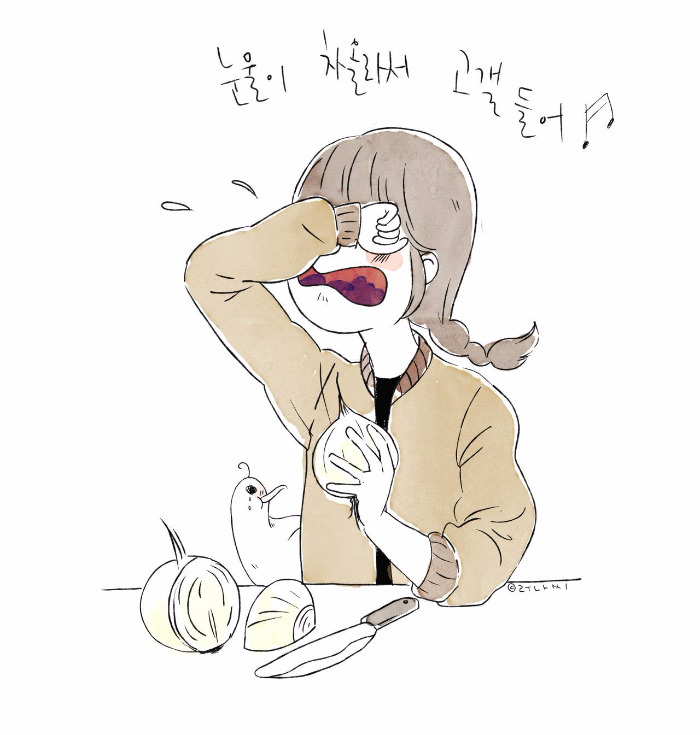 하다못해 양파라도 썰면서 눈물을 기다린다.