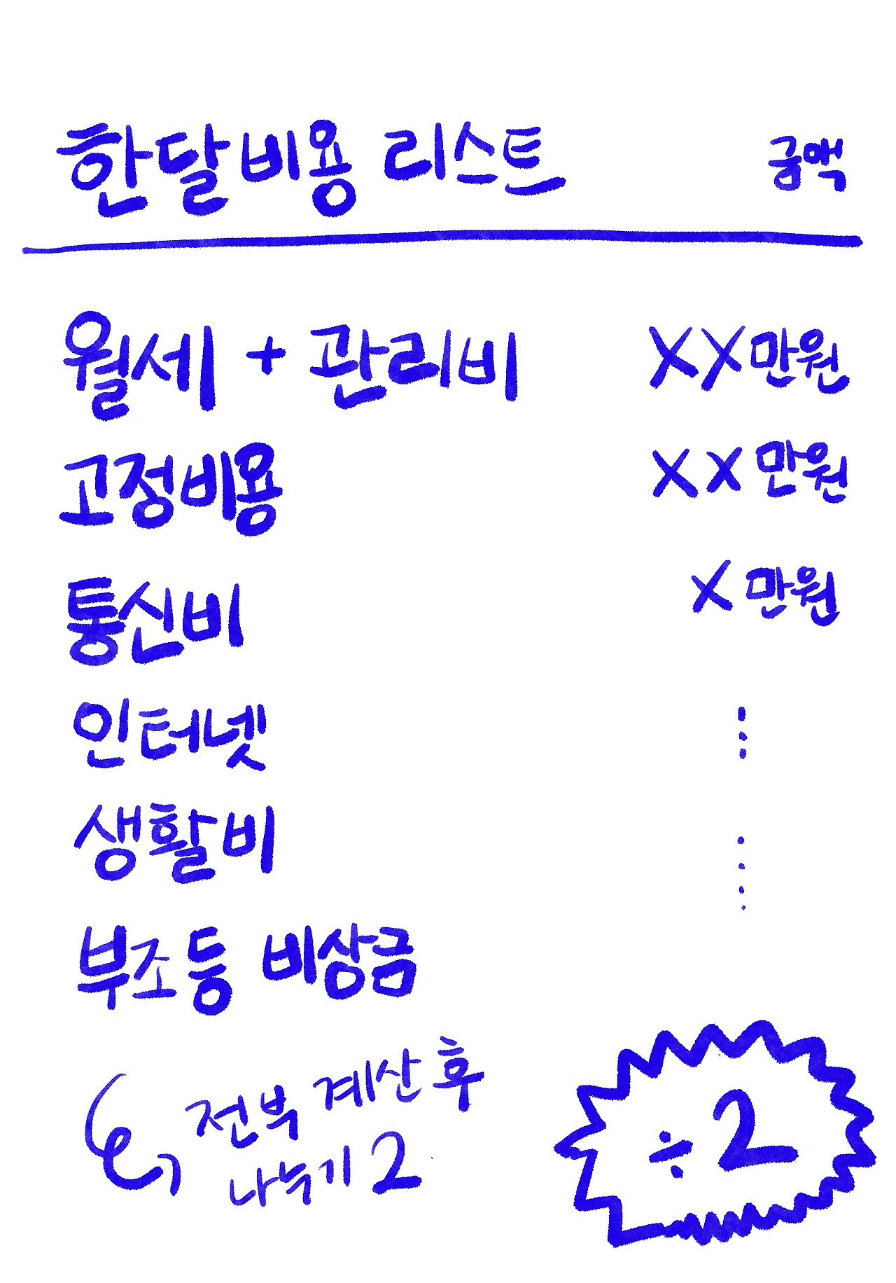 우리 같은 경우는 고정비용 항목에 나보단 상대의 고정비용이 훨씬 많았는데, 일단 그런 부분은 생각하지 않고 전부 합산하여 계산을 했다.