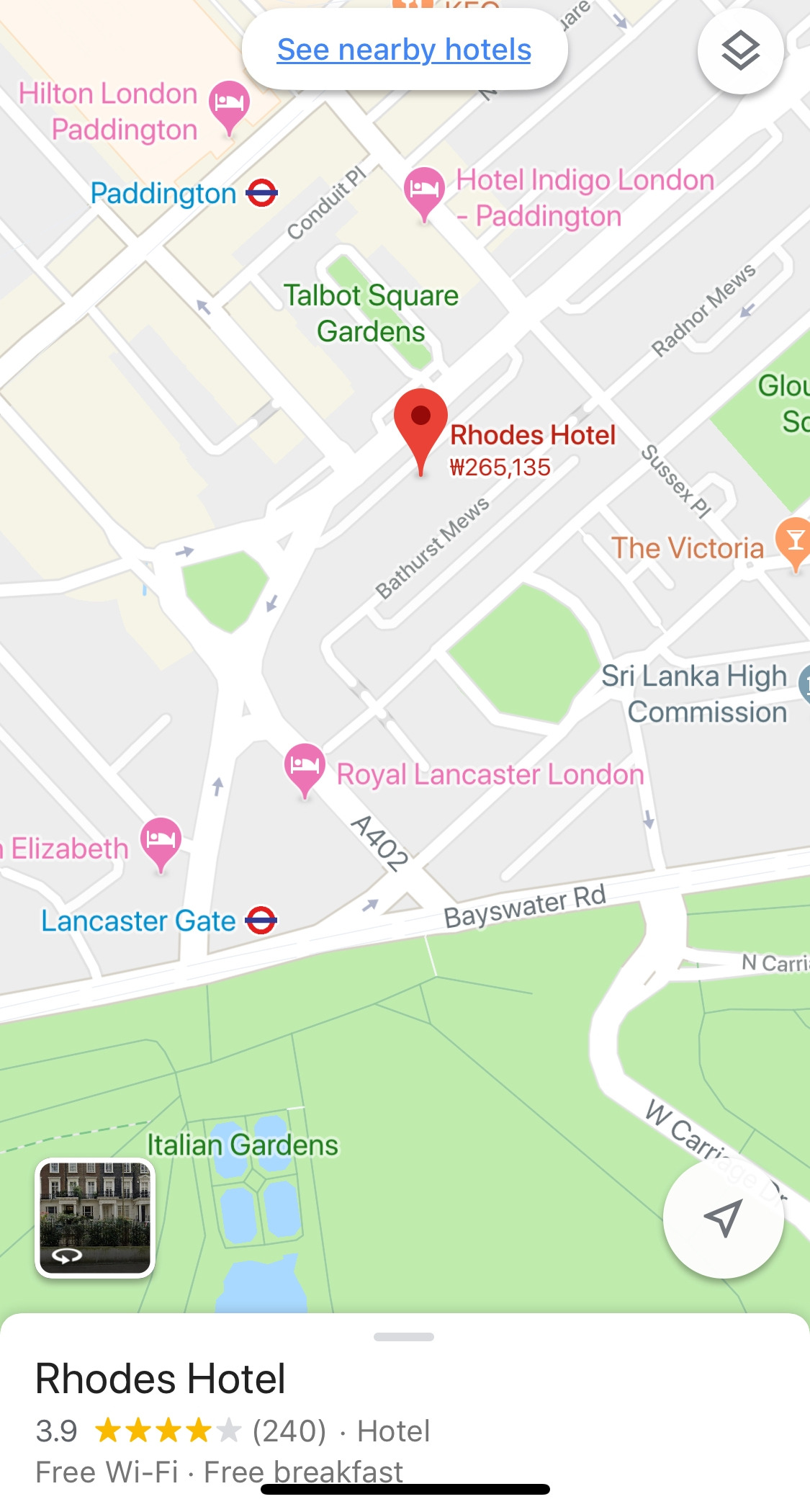 패딩턴역에서 제일 가까운 Hyde Park(하이드파크)를 조깅하는 것만으로도 좋았다던 후기가 있어서 이번 호텔을 예약했는데, 그래서 혹시 몰라서 운동복도 챙겨갔더랬다.
