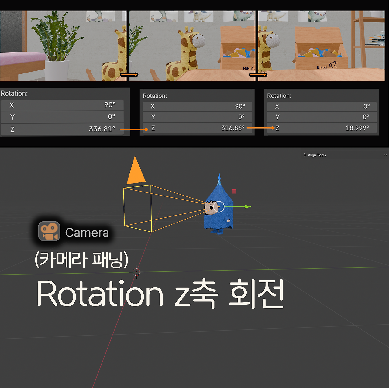 단순한 장면이라면 카메라 하나로 이동·회전·줌을 동시에 제어해도 되지만, 애니메이션이 복잡해질수록 조정이 점점 까다로워집니다. 이때 Empty와 카메라의 역할을 나눠주면, 훨씬 깔끔하게 제어할 수 있죠.