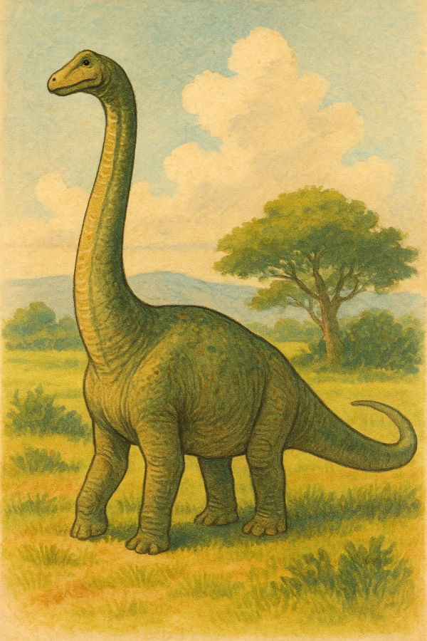 브라키오사우루스는 약 1억 5천만 년 전 쥐라기 후기 시대에 살았던 초식 공룡입니다. 긴 목과 앞다리가 뒷다리보다 길어, 높은 나뭇잎을 먹기에 적합한 구조였죠. 몸길이는 최대 25m에 이르며, 크고 느긋한 인상으로 종종 ‘온순한 거인’이라 불립니다.